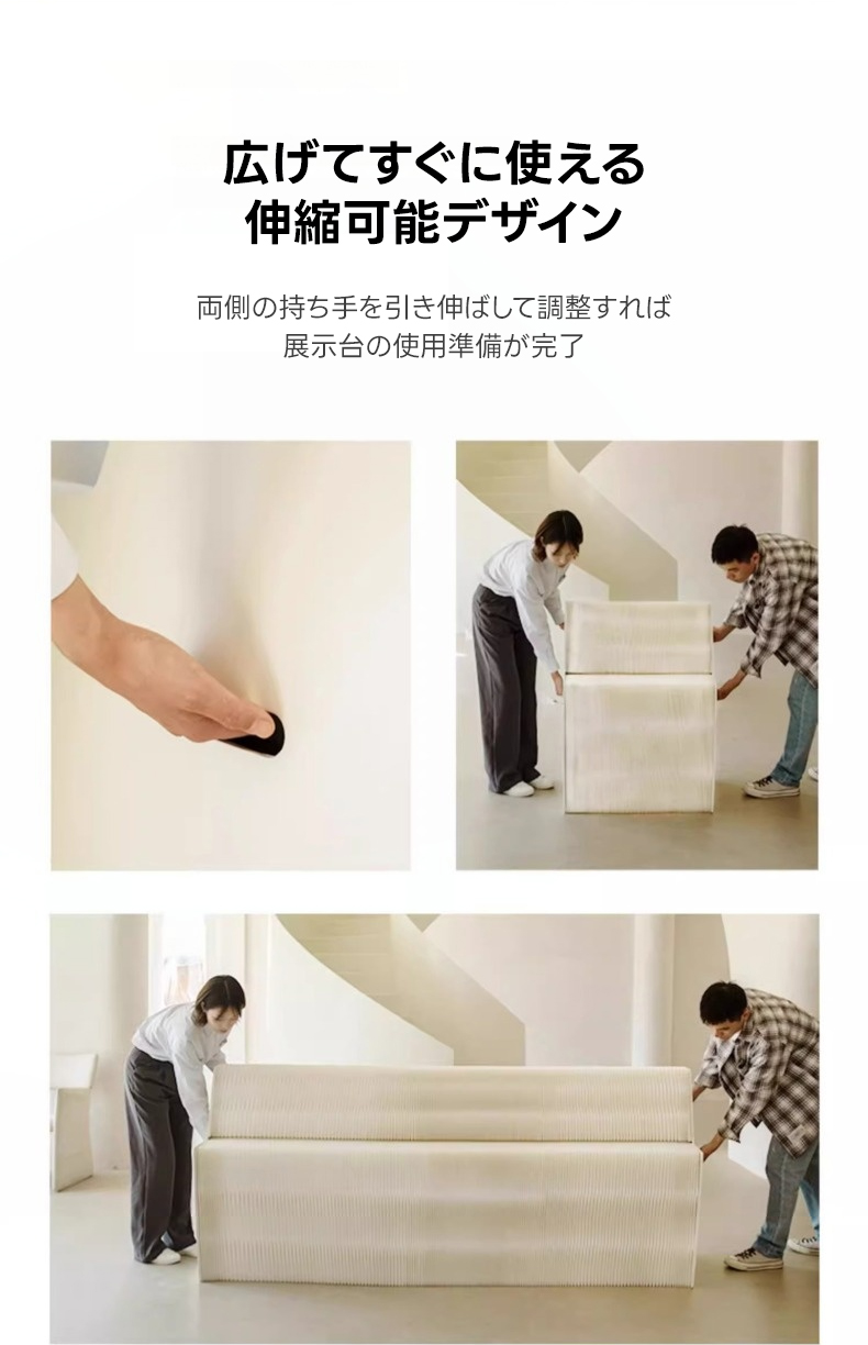 - 【エコ素材で環境に優しい】クラフト紙を使用したこの展示台は、環境に優しい素材で作られています。側板にはPUレザーを採用し、高級感と耐久性を兼ね備えています。