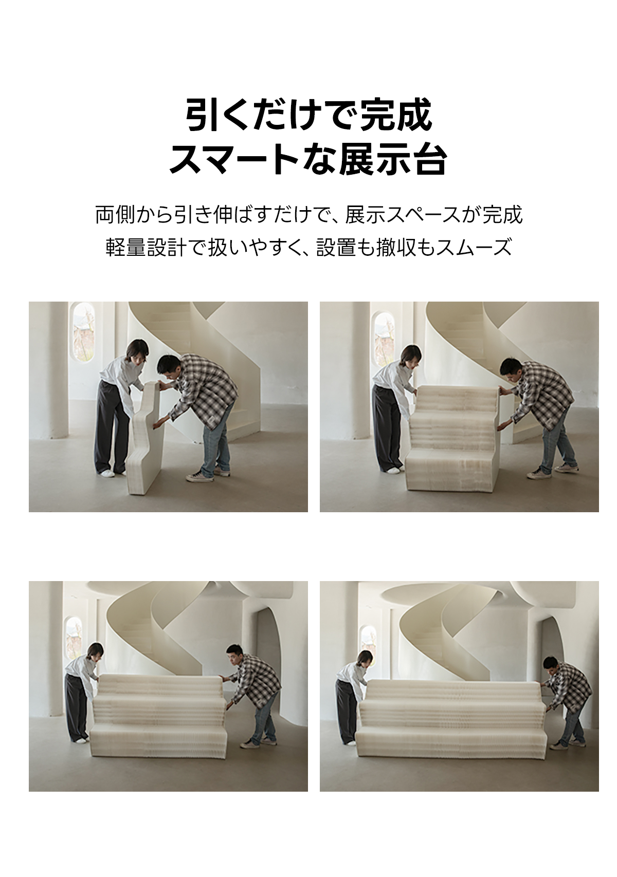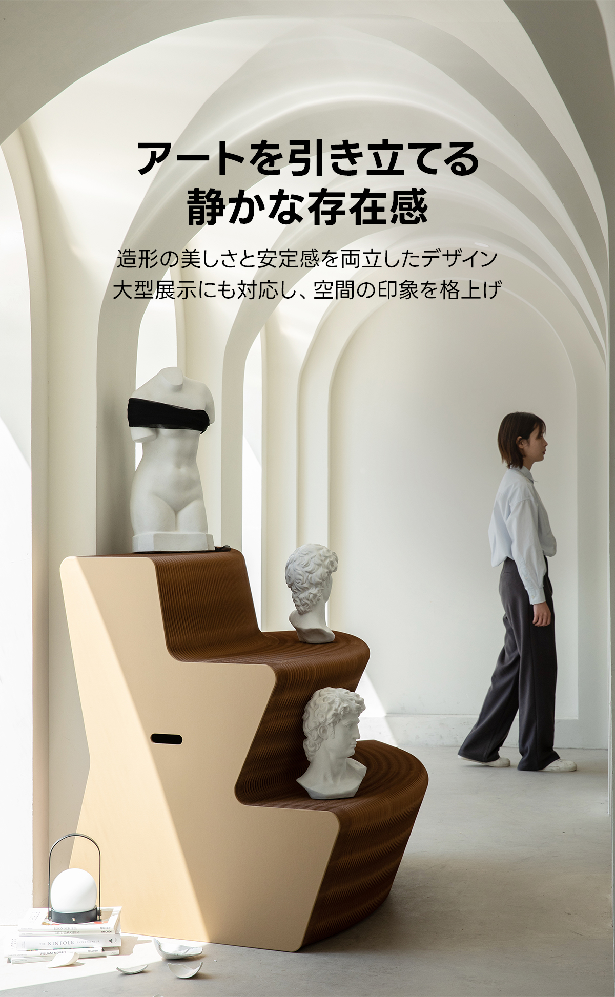 - 【多様な使用シーン】:このクラフト紙展示台は、リビングや寝室の空間をスタイリッシュに演出します。カップルやファミリー、一人暮らしの方にもおすすめです。シンプルでありながら機能的なデザインが、あなたの空間を一層引き立てます。