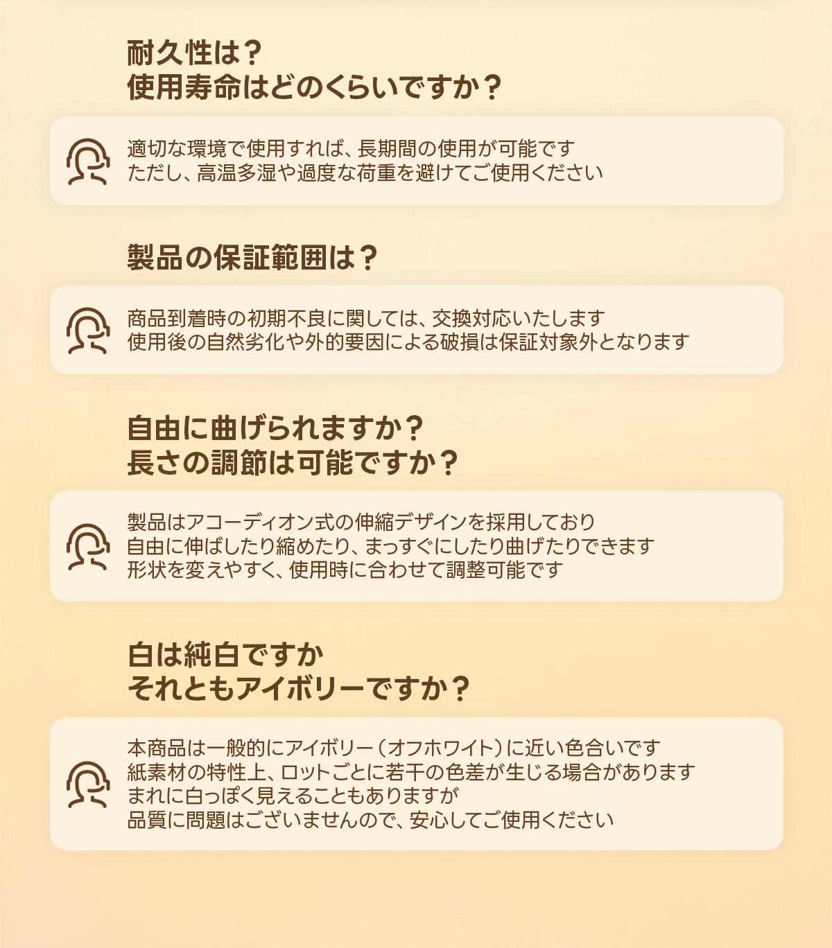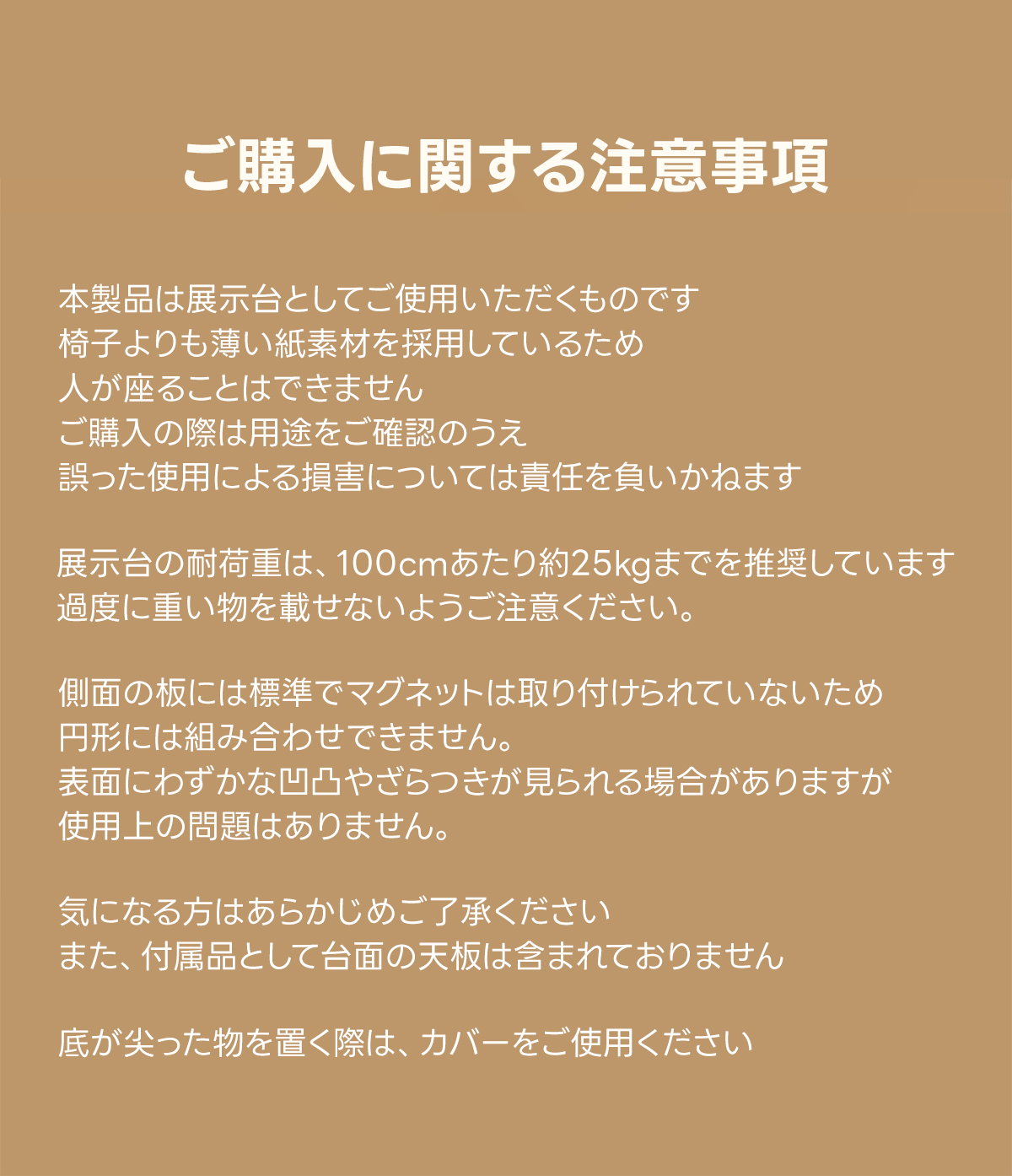- 【安心のアフターサービス】:このクラフト紙展示台は、安心してご使用いただけるよう、しっかりとした品質管理のもとで製造されています。ご購入後のサポートも充実しており、安心してお使いいただけます。