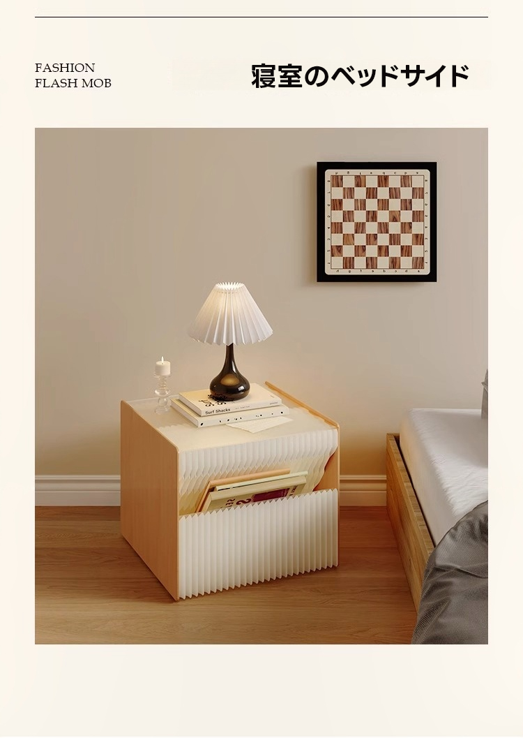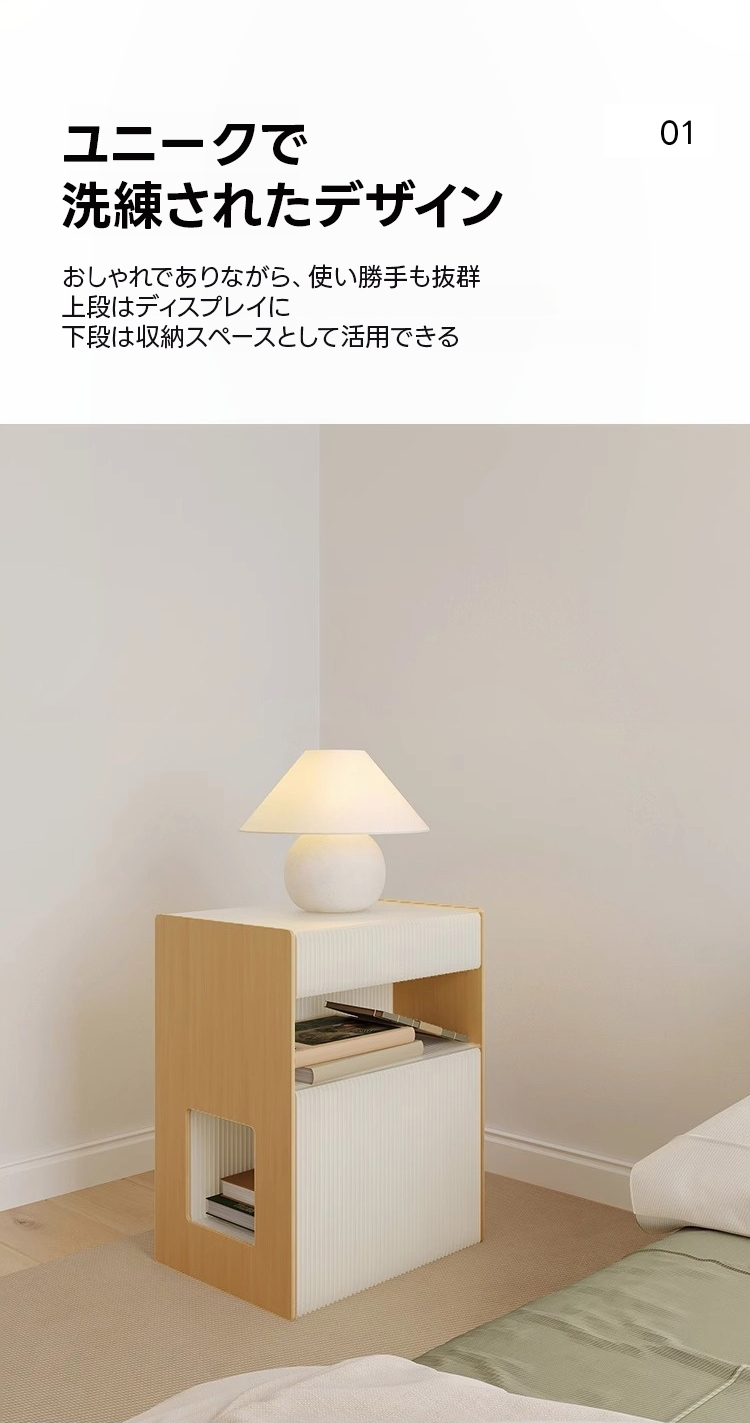 - 【ユニークなデザインと機能性】:アコーディオン調のデザインが特徴のこのサイドテーブルは、上段がディスプレイ用、下段が収納スペースとして活用可能です。どんな空間にも自然に溶け込み、インテリアとしての存在感を発揮します。