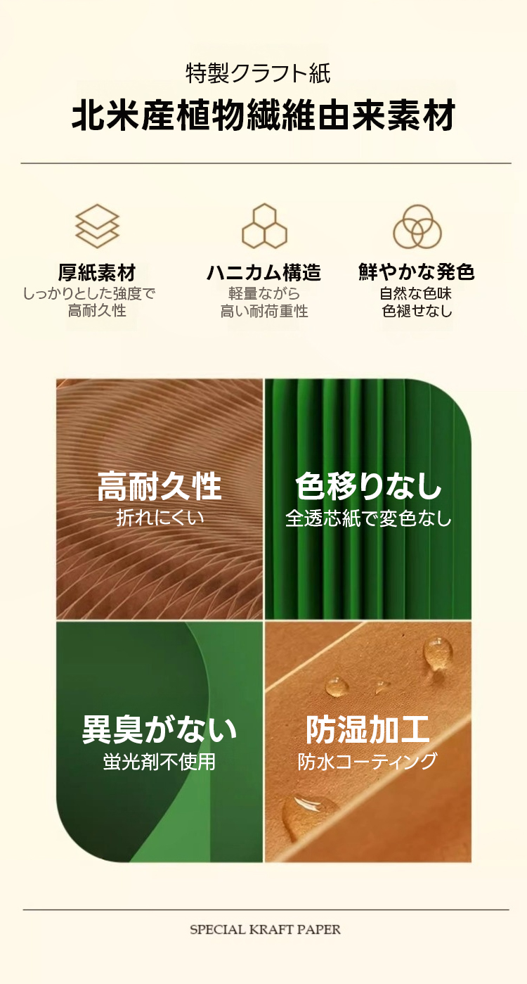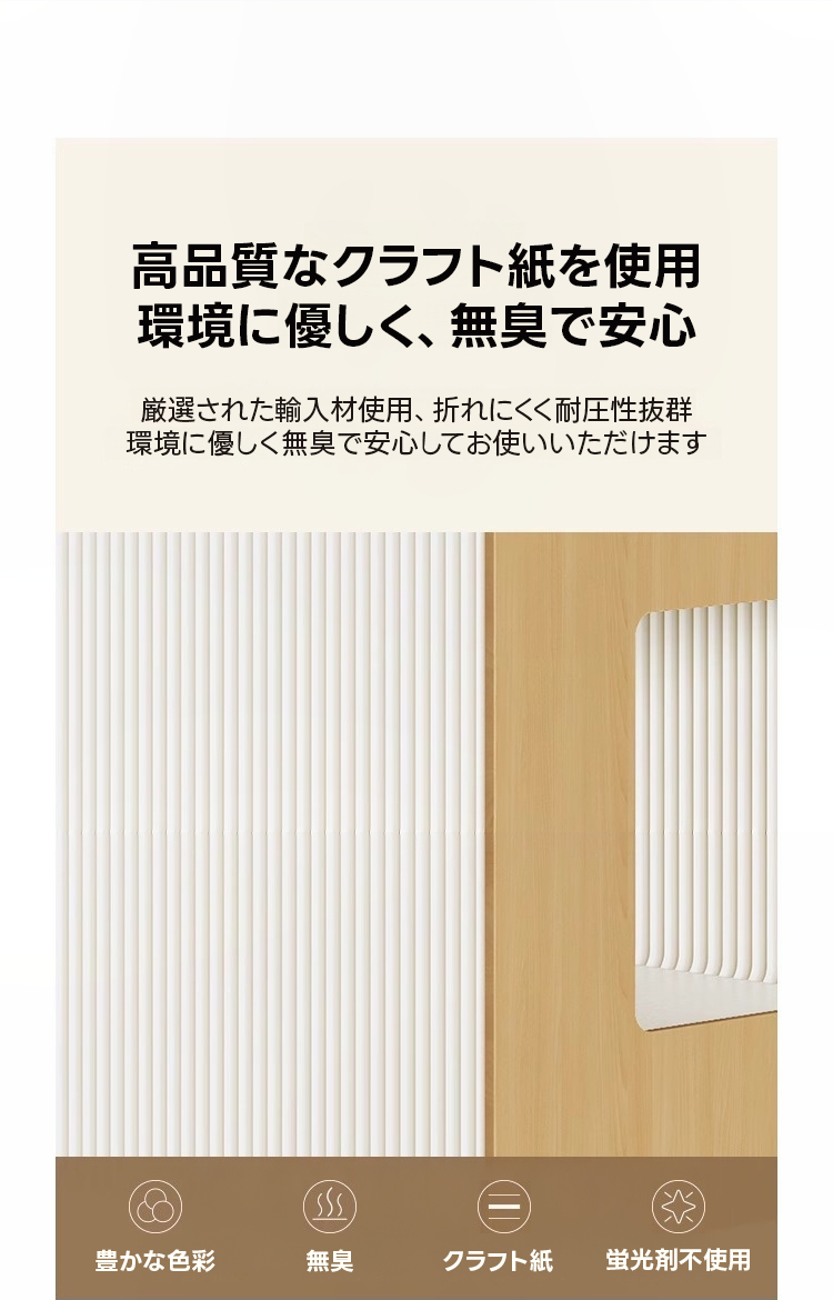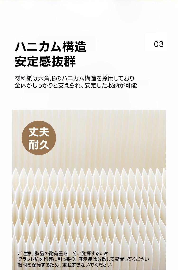 - 【環境に優しい高品質素材】:高品質なクラフト紙を使用し、環境に優しく無臭で安心して使用できます。ハニカム構造により、軽量でありながら高い耐荷重性を実現しており、長期にわたって使用可能です。