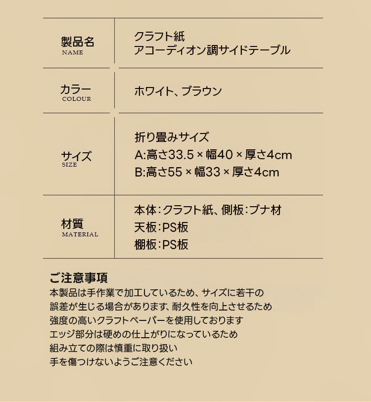 Kraft Paper クラフト紙アコーディオン調サイドテーブル