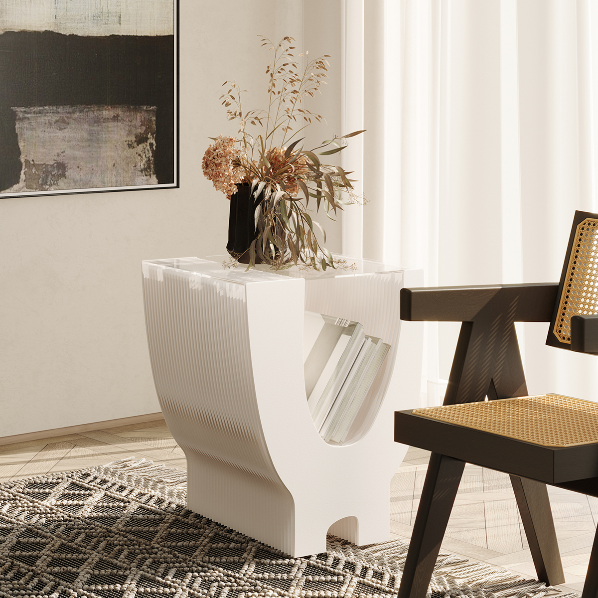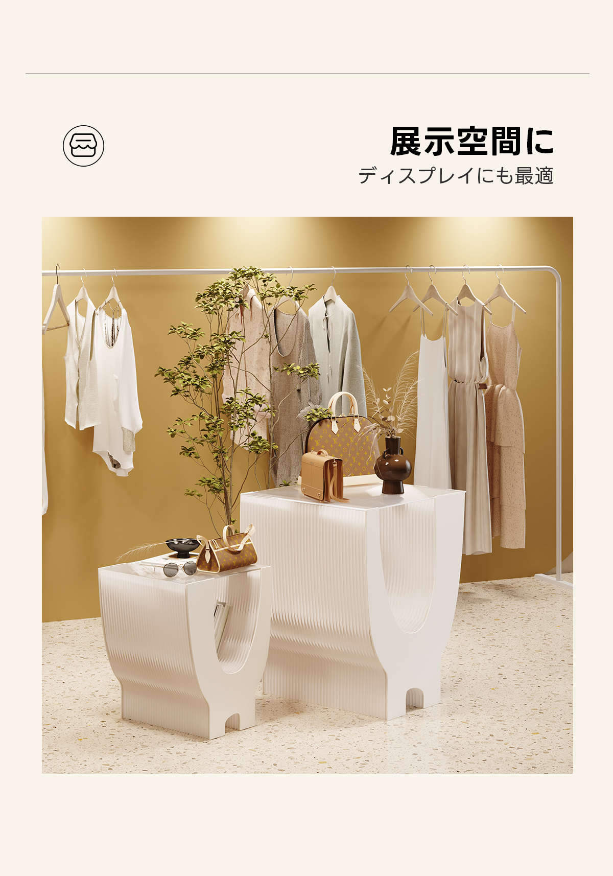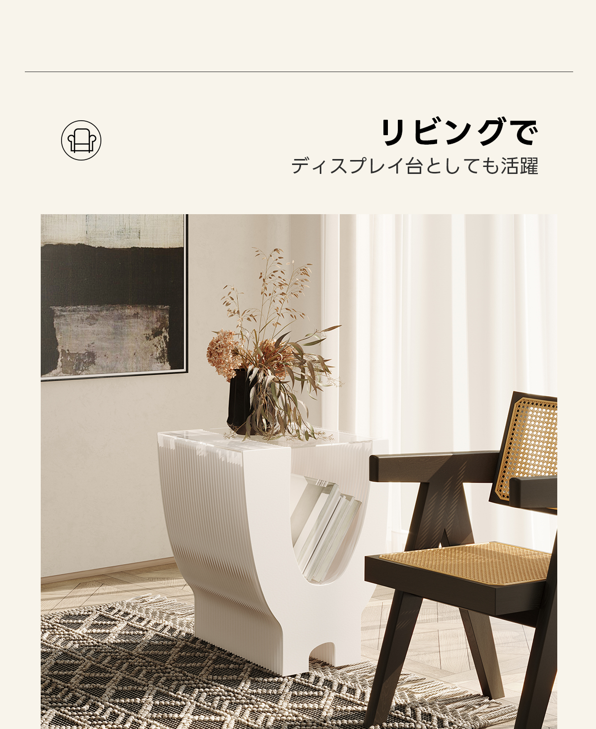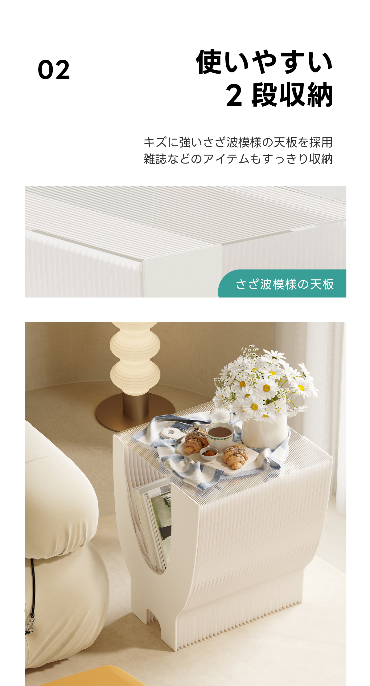 - 【多用途なデザイン】このサイドテーブルは、リビングや寝室、店舗のディスプレイ台としても活躍します。2段収納が可能で、雑誌や小物をすっきりと整理できるため、様々なシーンでご利用いただけます。
