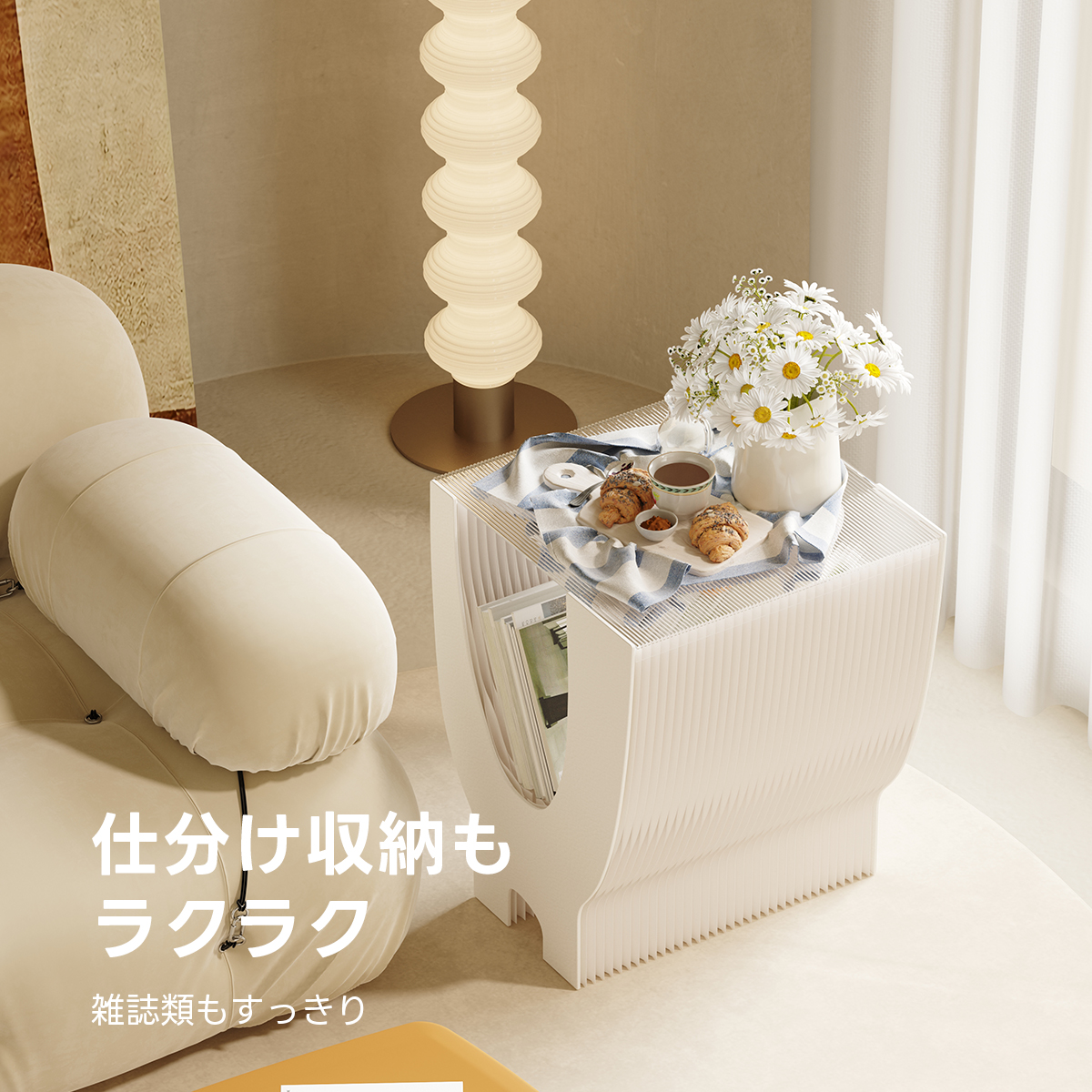 - 【エコ素材と撥水加工】長繊維のクラフト紙を使用したエコフレンドリーなサイドテーブルです。撥水加工が施されているため、水に強く、お手入れが簡単です。環境に配慮しつつ、耐久性にも優れた素材を採用しています。