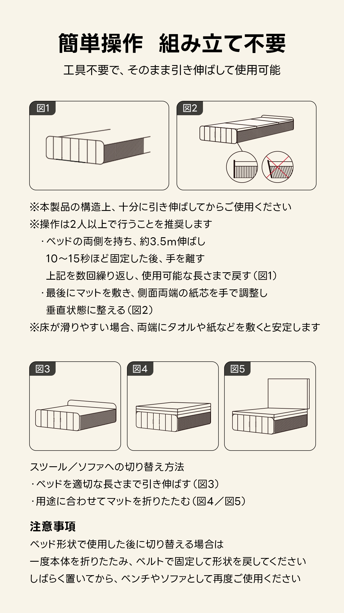 Kraft Paper 3WAY折りたたみベッド|折りたたみ×省スペース収納