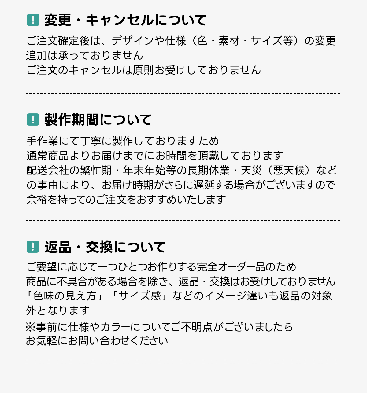 ※オーダーメイド商品のため、通常の商品よりもお届けにお時間をいただく場合がございます。あらかじめご了承ください。