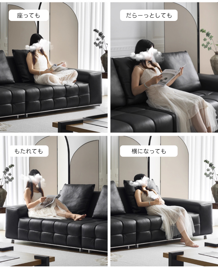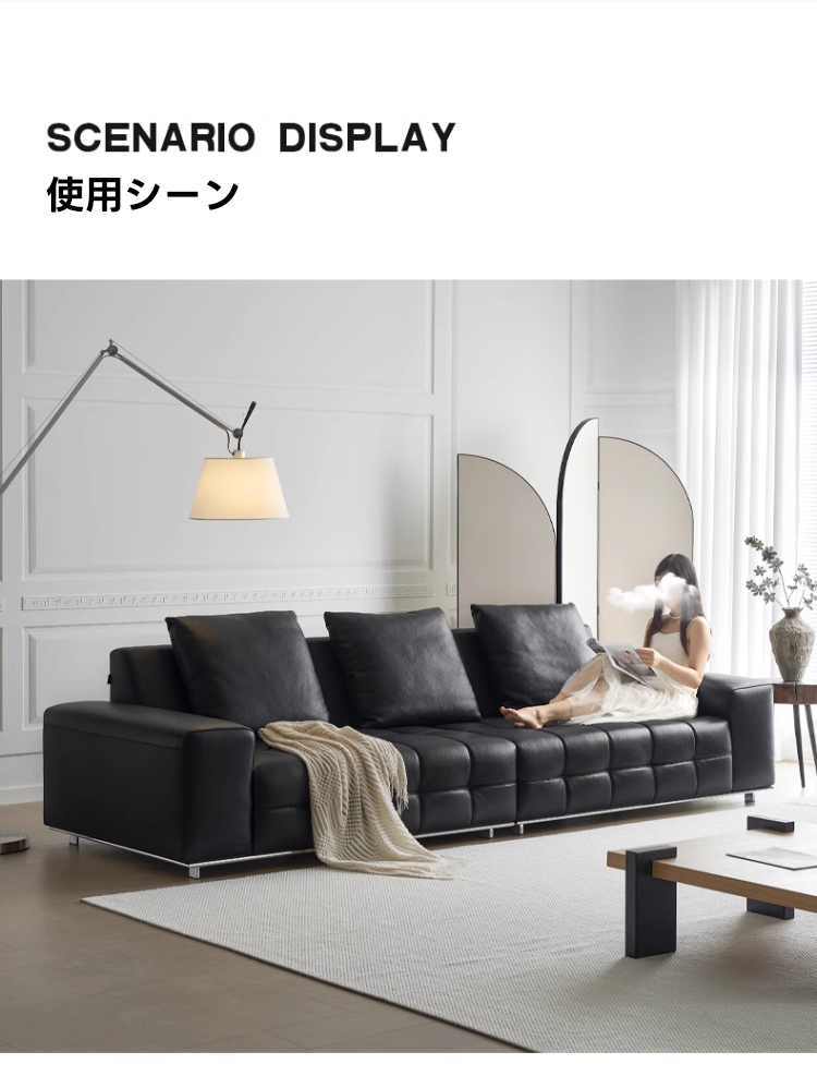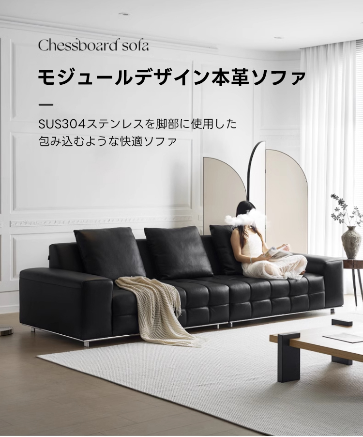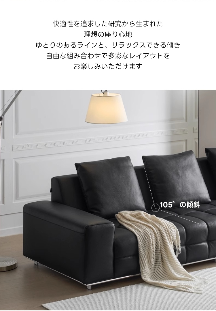 - 【カスタマイズ可能なデザイン】:このモジュールデザイン本革ソファは、スペースや用途に応じてレイアウトを自由に変更可能。カップルやファミリー、一人暮らしの方にも最適で、どんなインテリアにもマッチします。