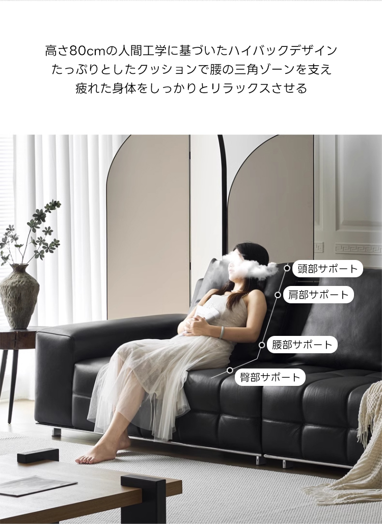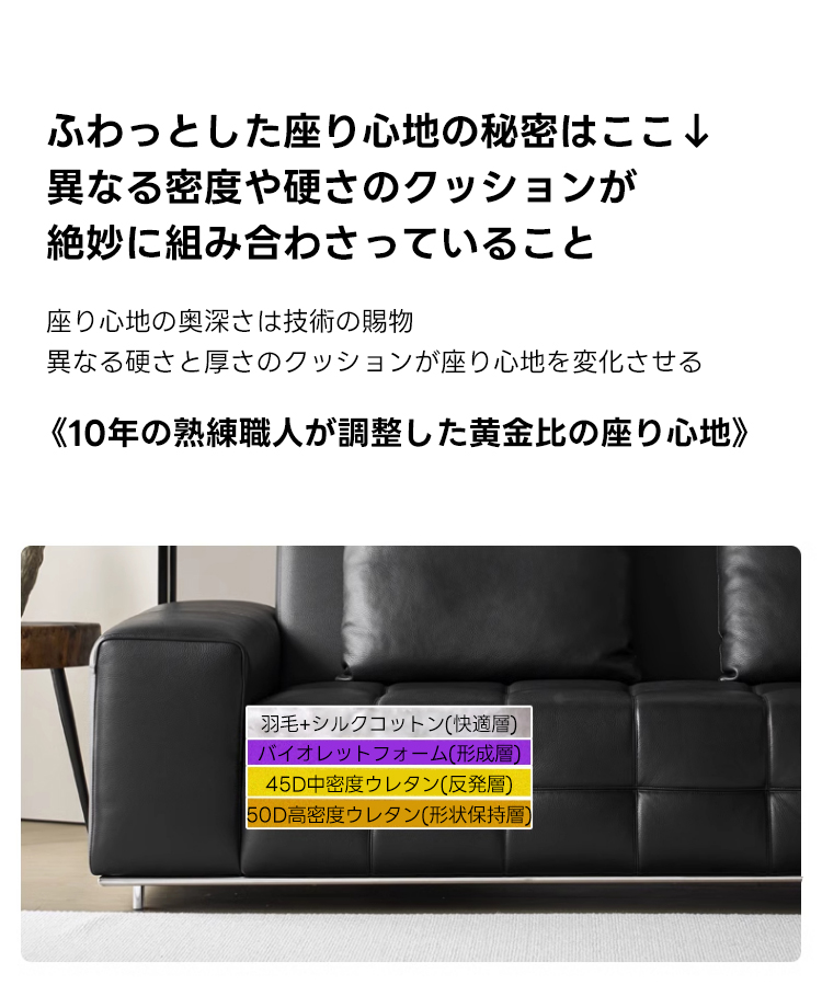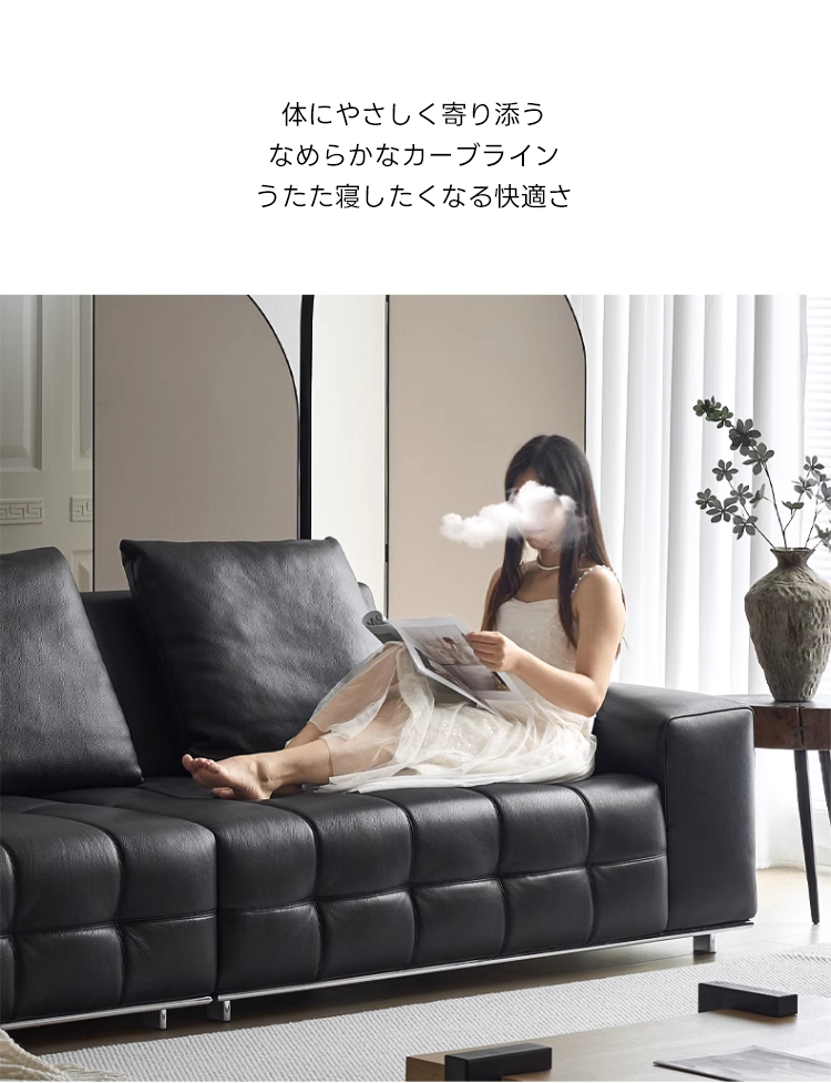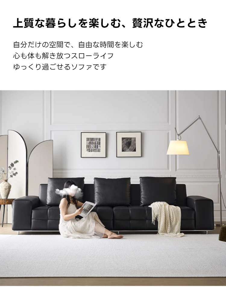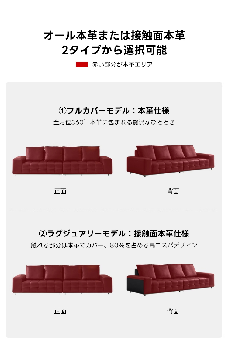 - 【カスタマイズ可能なデザイン】:このモジュールデザイン本革ソファは、スペースや用途に応じてレイアウトを自由に変更可能。カップルやファミリー、一人暮らしの方にも最適で、どんなインテリアにもマッチします。