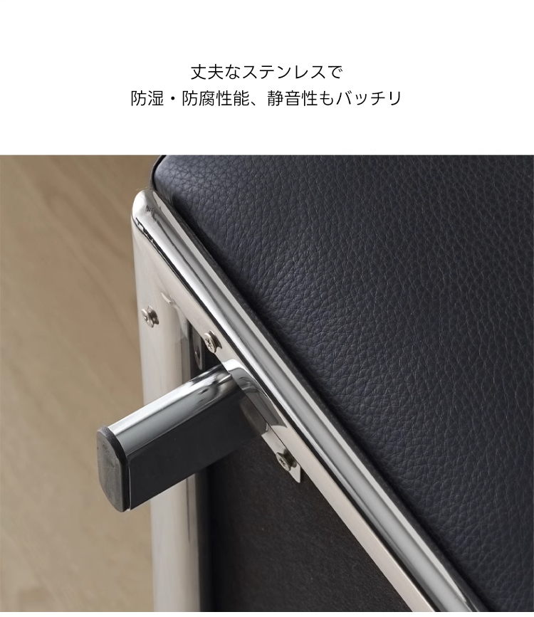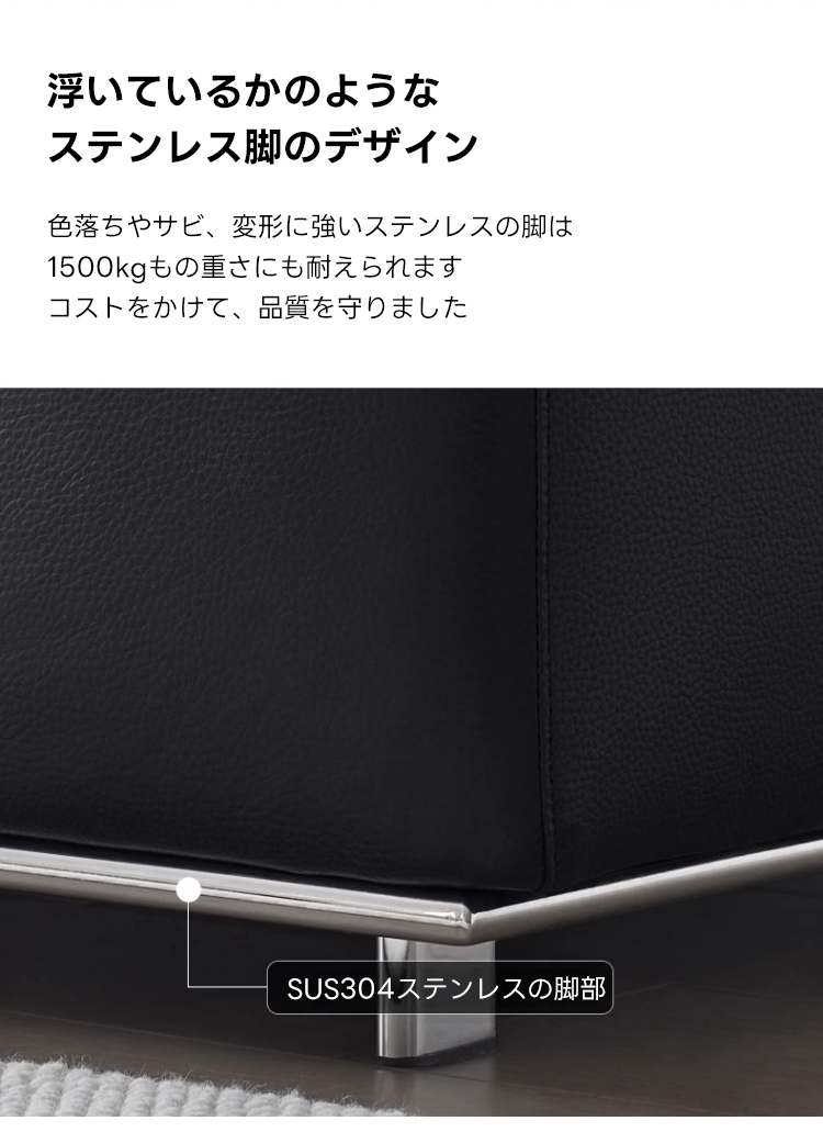 - 【高品質な素材とデザイン】:トップグレインレザーを使用したブラックの外観がラグジュアリーな雰囲気を演出。SUS304ステンレスの脚部は1500kgの重さにも耐えられる頑丈な構造で、長期間安心してご使用いただけます。