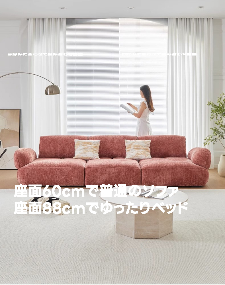 - 【贅沢な座り心地を提供】:このモジュール式シェニールソファは、柔らかく滑らかなシェニール生地を使用し、贅沢な座り心地を提供します。背もたれは調節可能で、60cmと88cmの奥行きを選べるため、リビングでのくつろぎタイムに最適です。