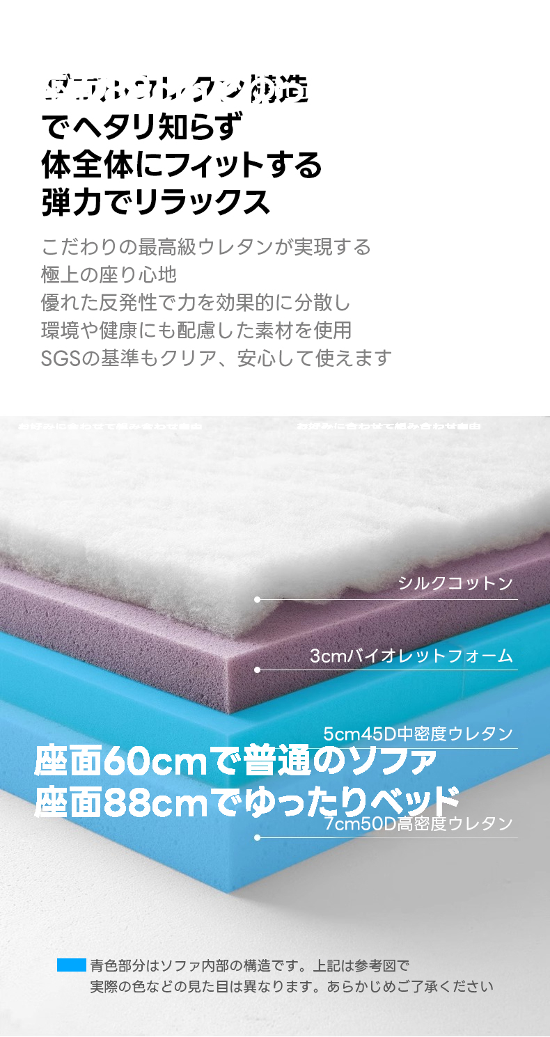 - 【多様なライフスタイルにフィット】:一人暮らしの方からカップル、ファミリーまで、さまざまなライフスタイルにフィットします。リビングやダイニングにぴったりのこのソファで、贅沢なリラックスタイムをお楽しみください。