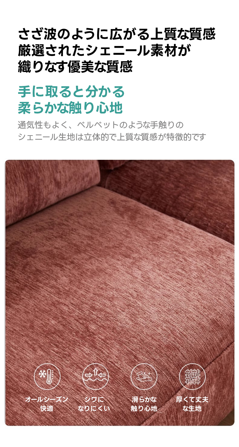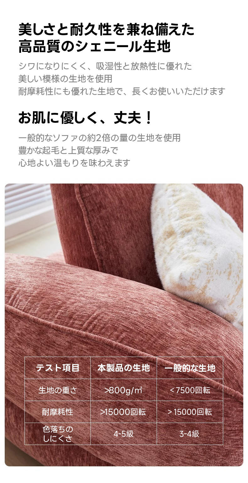 - 【高品質の素材とデザイン】:800g/m²の高密度シェニール生地を使用しており、耐久性と美しさを兼ね備えています。色褪せやシワになりにくく、長く使用できます。ダブルウレタン構造で、体全体を優しく支えます。