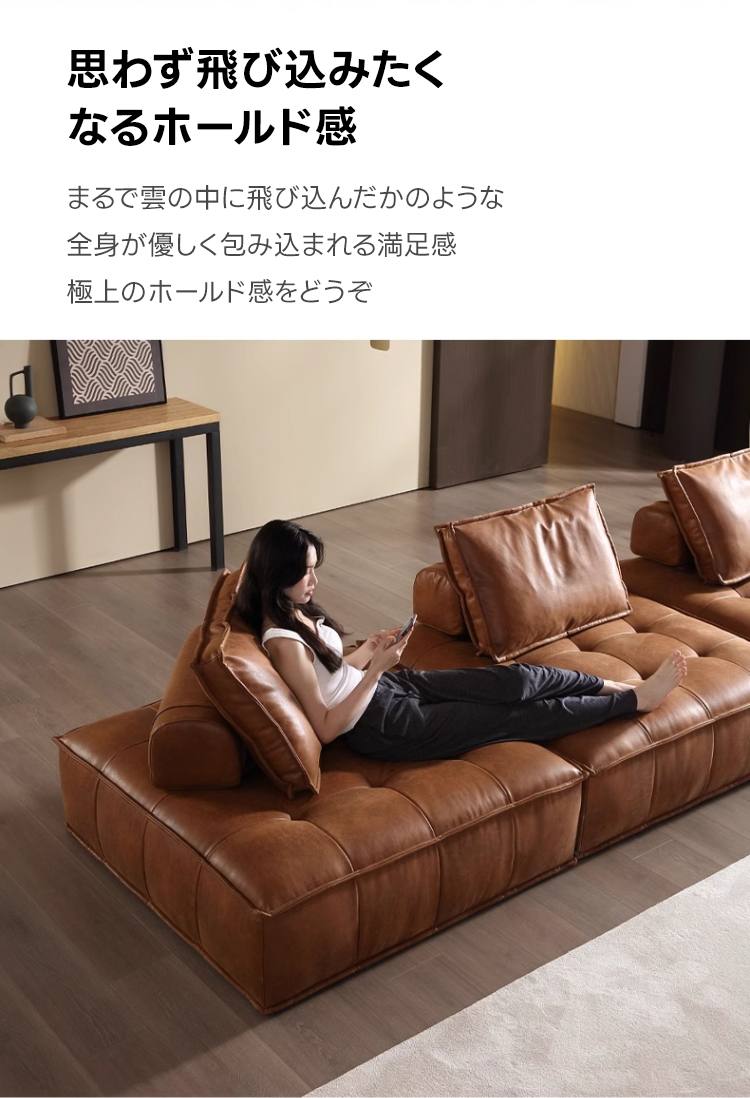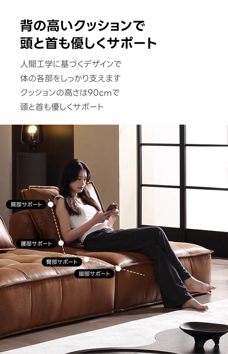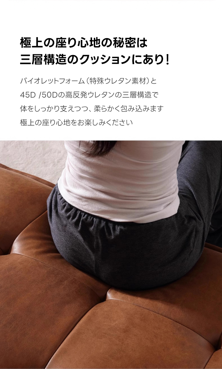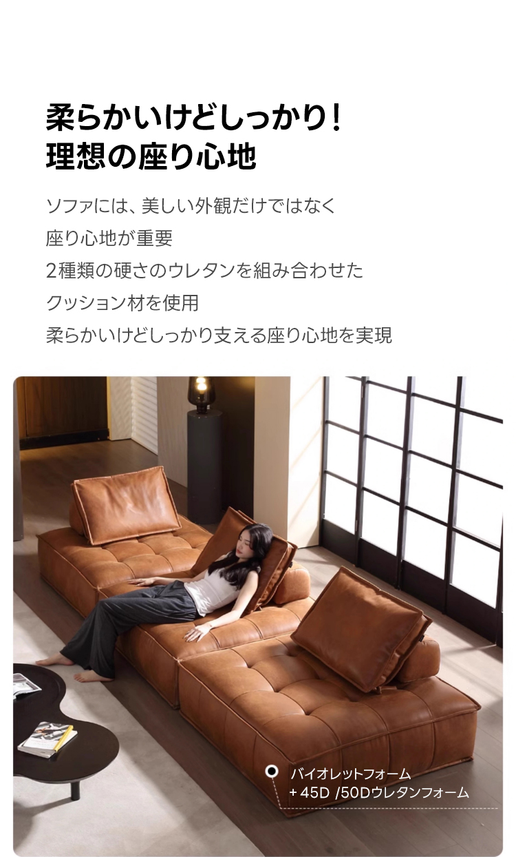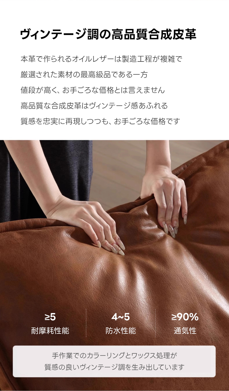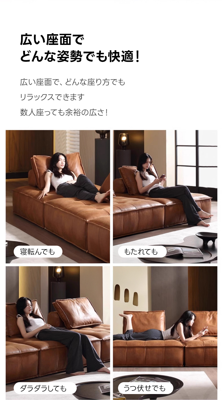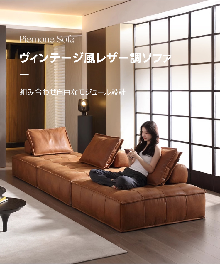 - 【モジュール設計で自由自在】ヴィンテージ風レザー調ソファは、自由に組み合わせ可能なモジュール設計を採用。1人掛けからL字型まで、リビングのスペースに合わせてカスタマイズ可能です。多様なスタイルに対応し、空間にぴったりフィットします。