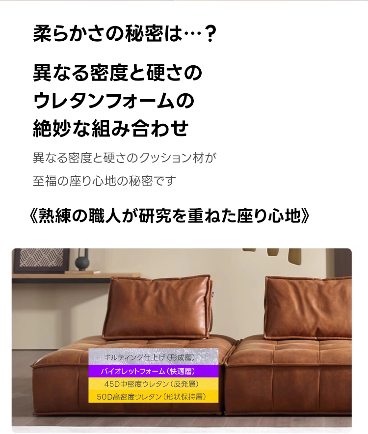 - 【快適な座り心地でリラックスタイムを】クッションにはダウンとシルクコットンを使用し、柔らかさと弾力性を兼ね備えています。バイオレットフォームと高反発ウレタンの三層構造により、体をしっかりと支えつつ、柔らかく包み込むような座り心地を実現しています。