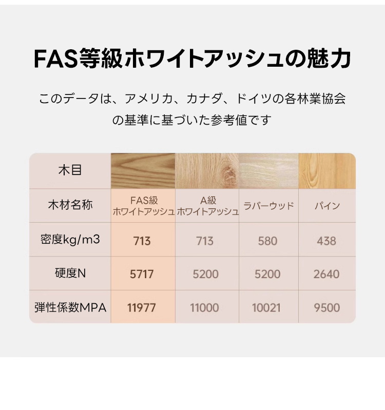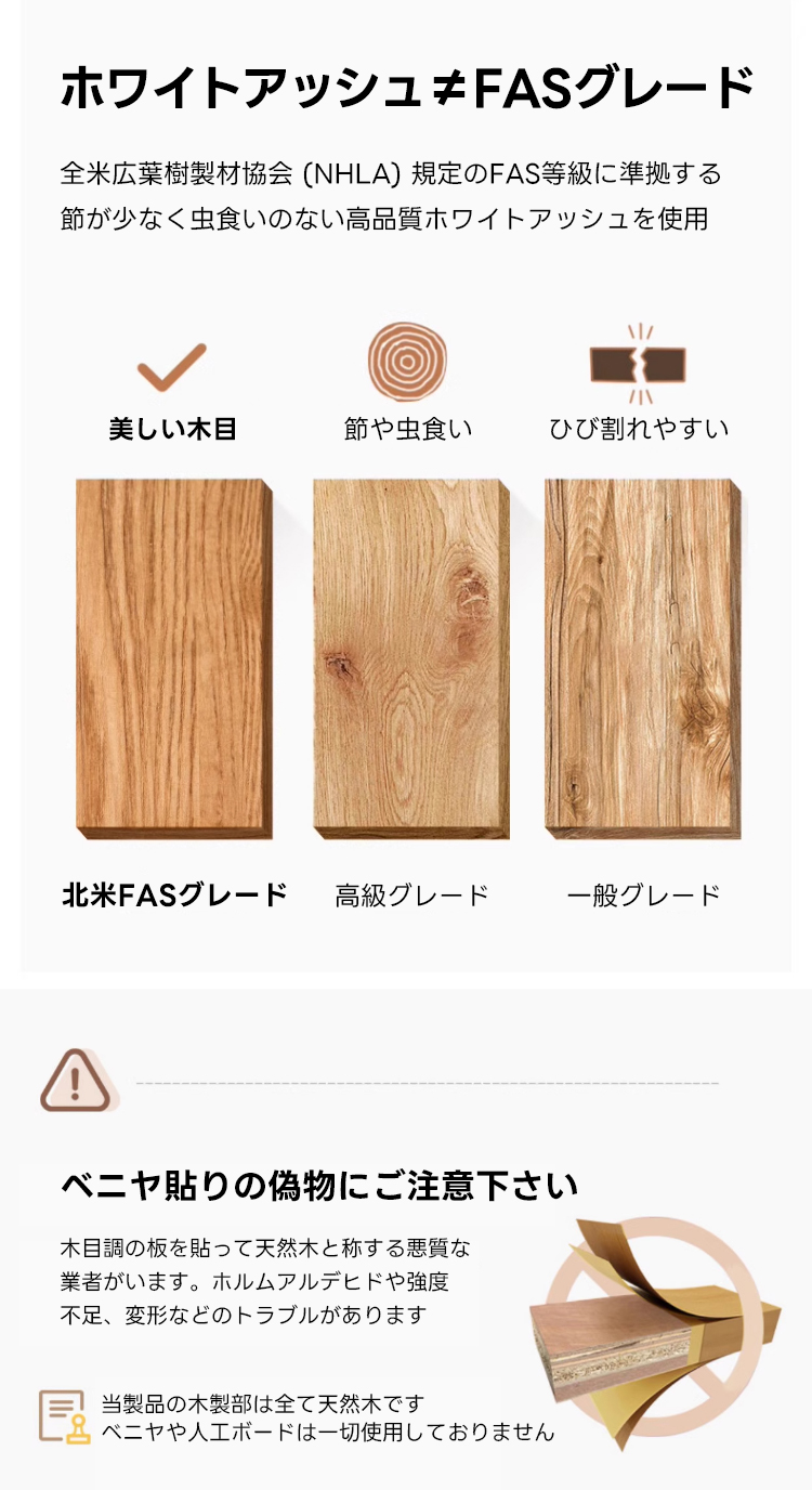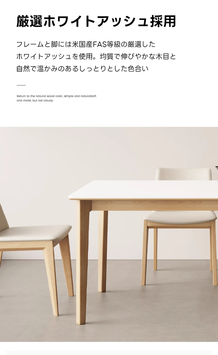 - 【高品質な素材とデザイン】脚部には北米FAS等級のホワイトアッシュ材を使用し、しっかりとした安定感と美しい木目が魅力です。シンプルモダンなデザインが、空間に洗練された雰囲気を与えます。