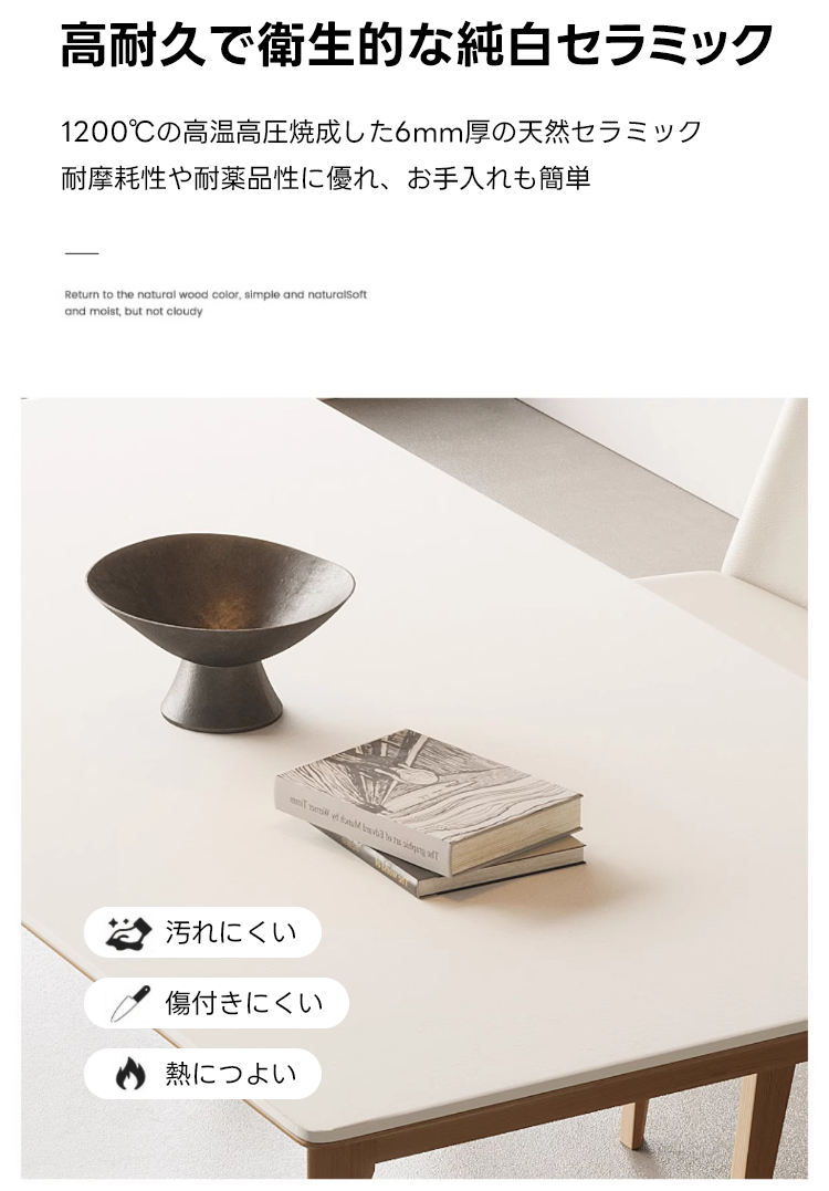 - 【優れた耐久性と機能性】この和風天然木ダイニングテーブルは、セラミック天板を採用しており、耐久性と耐熱性に優れています。汚れや傷が付きにくい特性を持ち、長期間にわたって美しさを保ちます。