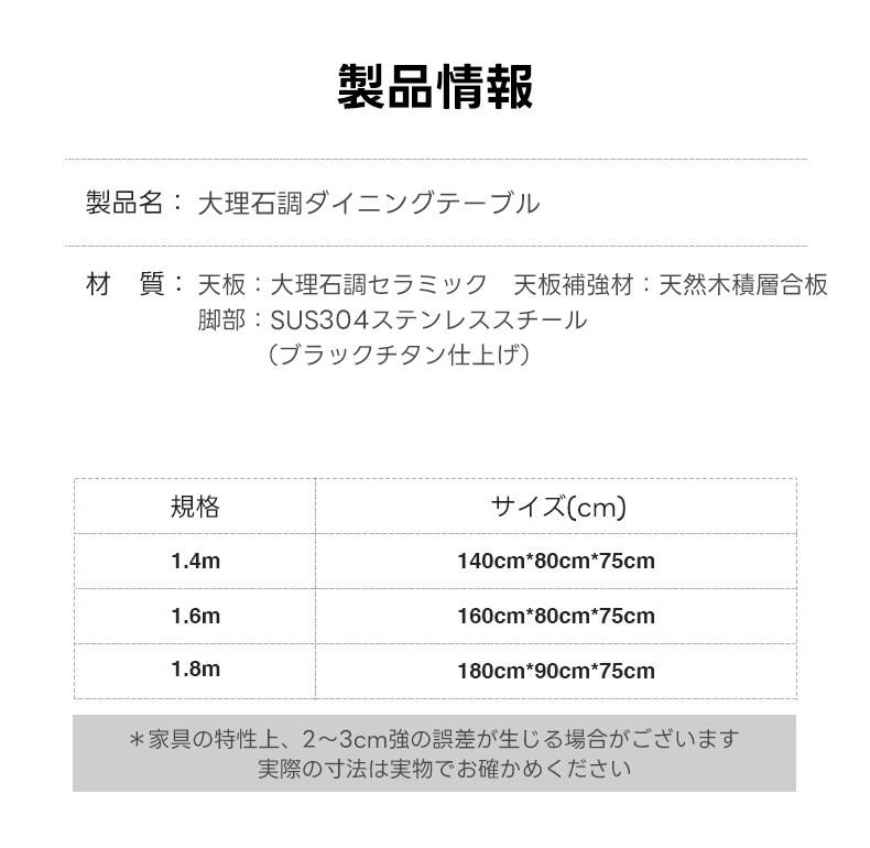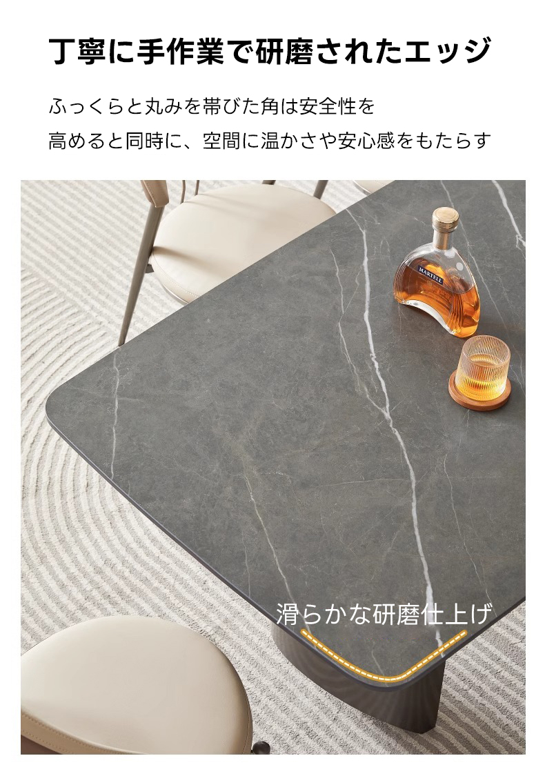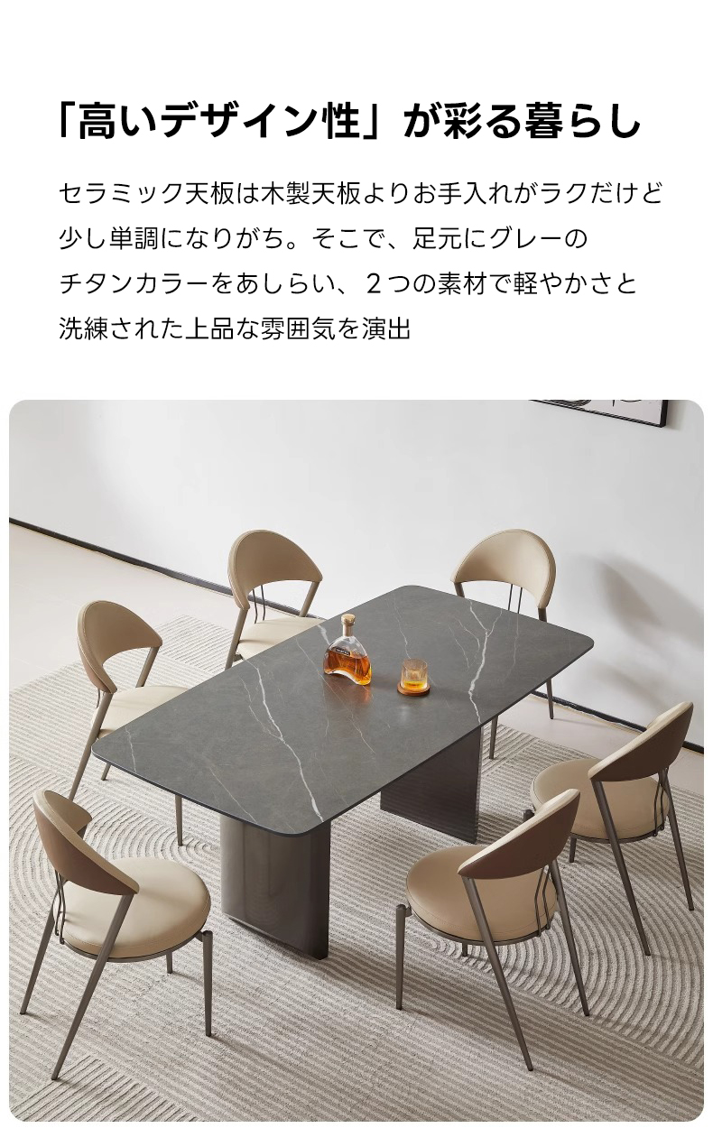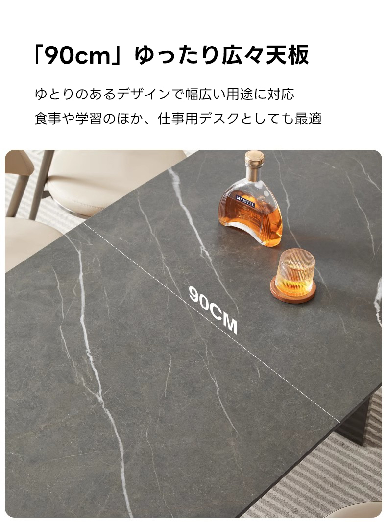 - 【高品質セラミック天板】この大理石調ダイニングテーブルは、耐熱性、耐衝撃性、耐傷性に優れたセラミック製天板を採用。長期間にわたって美しい状態を保ち、抗菌率99%で食品が直接触れても安全です。