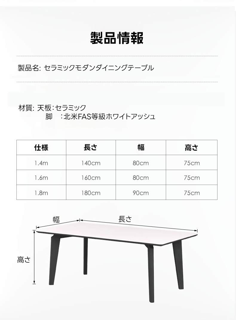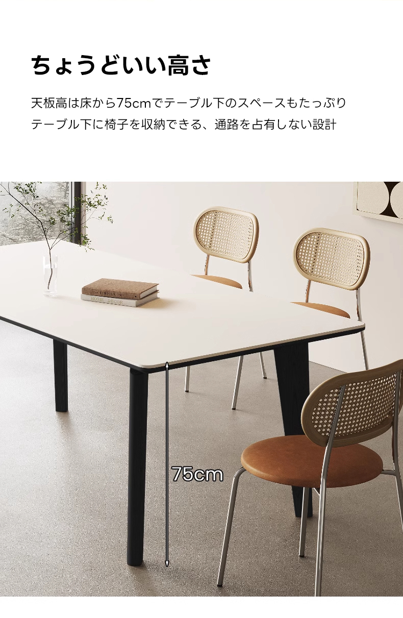 - 【多様なサイズバリエーション】140cm、160cm、180cmの3つのサイズから選べるため、スペースに合わせて最適なサイズを選択できます。高さ75cmの設計により、椅子をテーブル下に収納でき、スペースを有効活用できます。