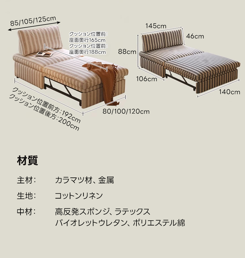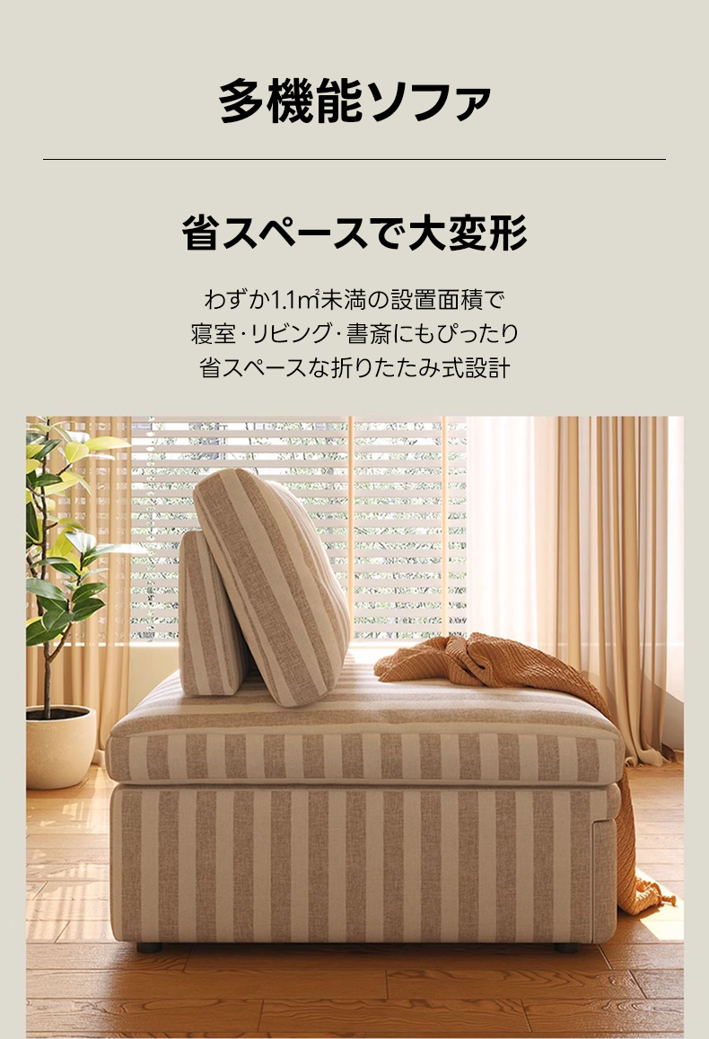 - 【多機能デザインで自由自在に】:3WAYナチュラルソファは、ソファ、二段ソファ、ソファベッドとして使用可能な多機能デザインを採用。リビングや寝室など様々なシーンで活躍し、簡単に形を変えられるため、空間を有効に活用できます。