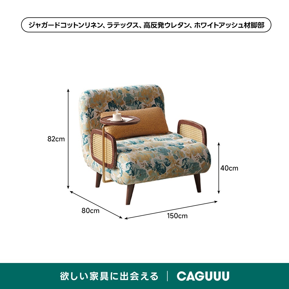 - 【高品質素材とデザイン】:ジャカードコットンリネン生地を使用し、吸湿性と通気性に優れています。ラタン調のアームがレトロなアクセントを加え、ホワイトアッシュ材の木製ソファ脚は、床の掃除がしやすい高さ20cmで設計されています。