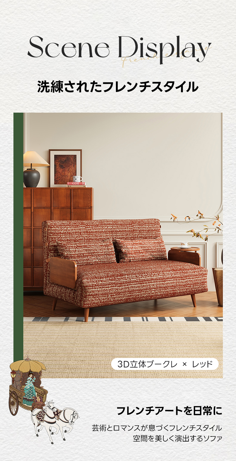 - 【スタイリッシュで省スペース】:フレンチレトロスタイルのデザインが洗練された空間を演出します。コンパクトに設置できるため、限られたスペースでも大きなゆとりを提供します。カップルやファミリーにぴったりの一品です。
