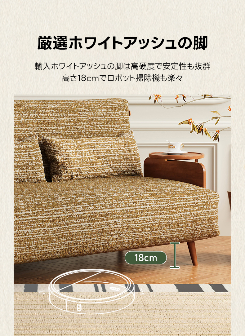- 【高品質素材で安心の耐久性】:天然木のフレームとホワイトアッシュの脚を使用し、耐久性と安定性を確保しています。シェニールやフランネル生地のカバーは、肌触りが良く、通気性と耐久性に優れています。