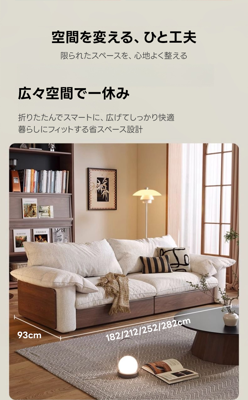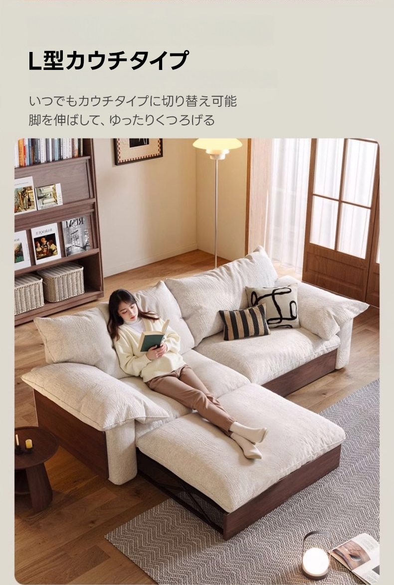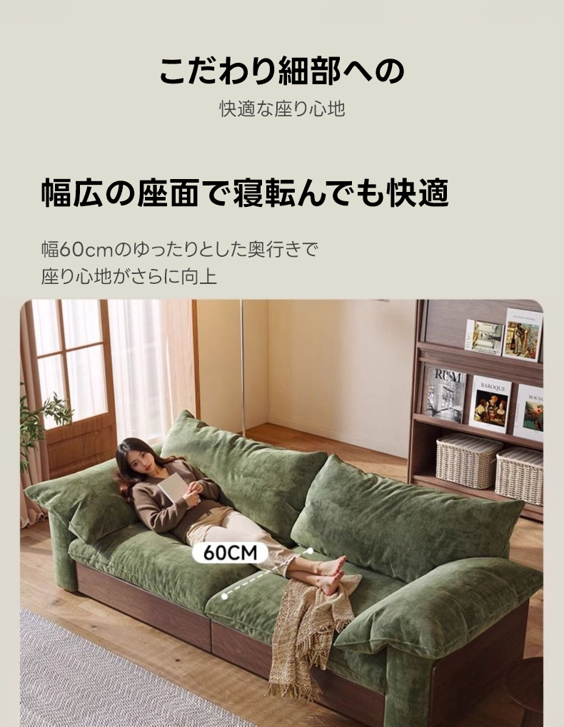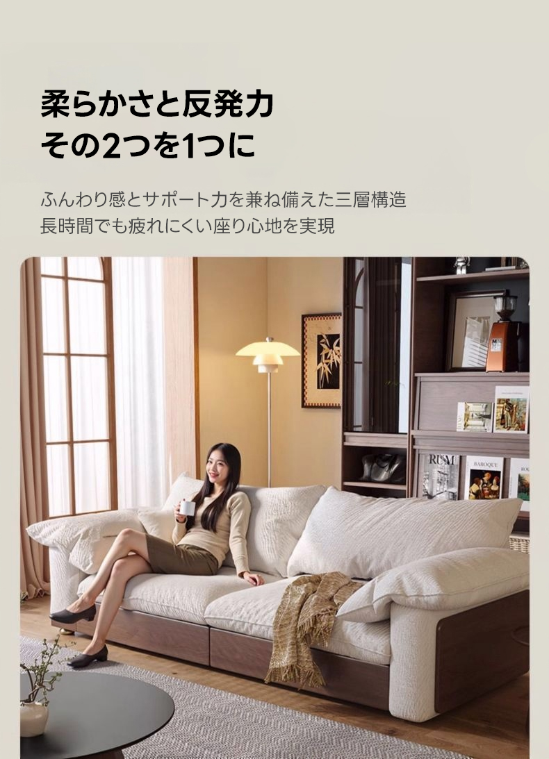 - 【カップルやファミリーに最適なソファ】:二人掛けから三人掛けまで対応可能な大型ソファで、カップルやファミリーに最適です。リビングでのリラックスタイムをより快適に過ごせます。