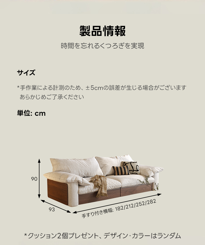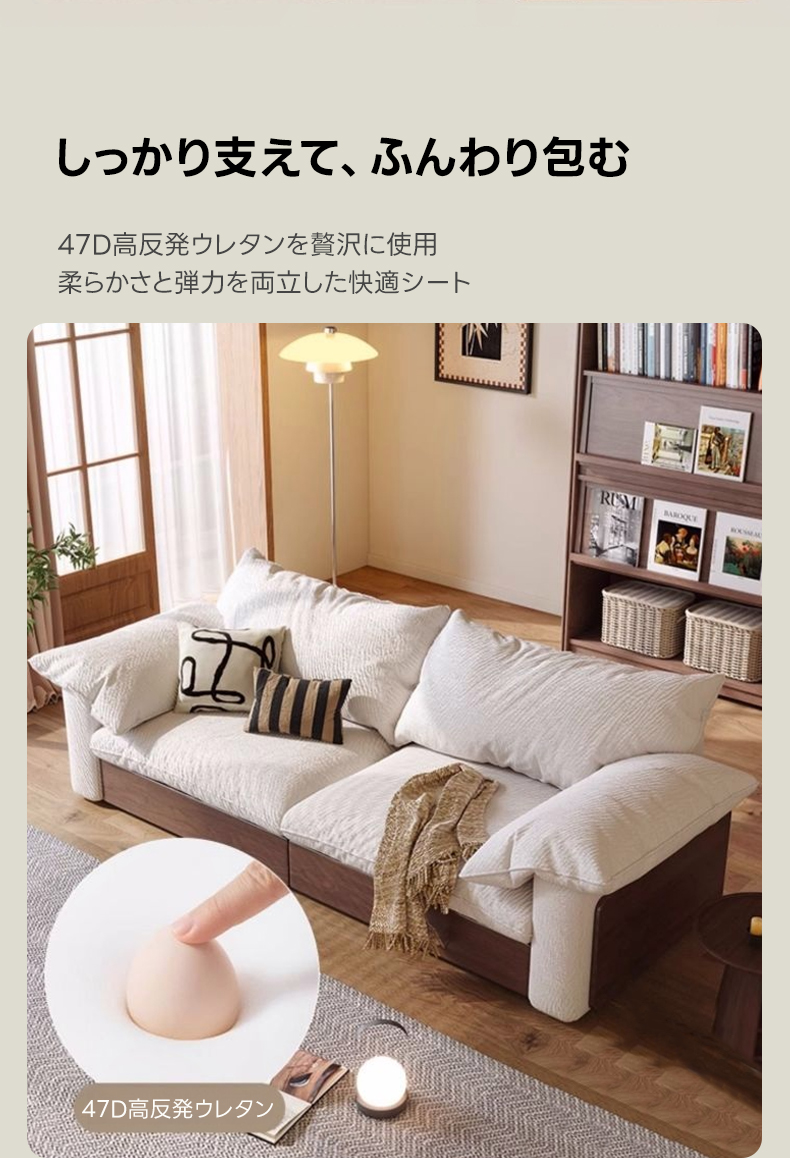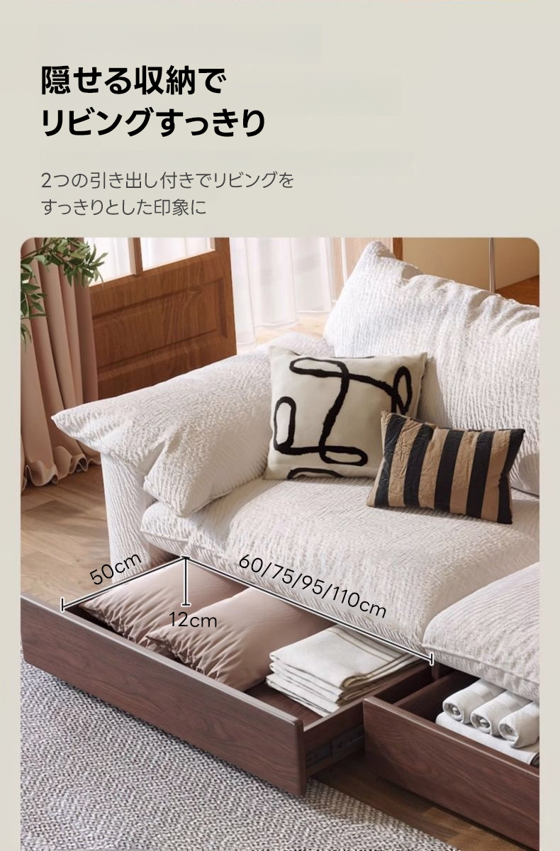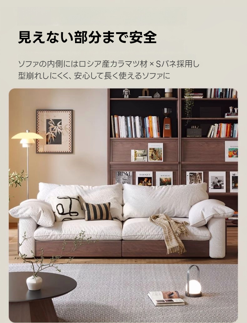 - 【カップルやファミリーに最適なソファ】:二人掛けから三人掛けまで対応可能な大型ソファで、カップルやファミリーに最適です。リビングでのリラックスタイムをより快適に過ごせます。