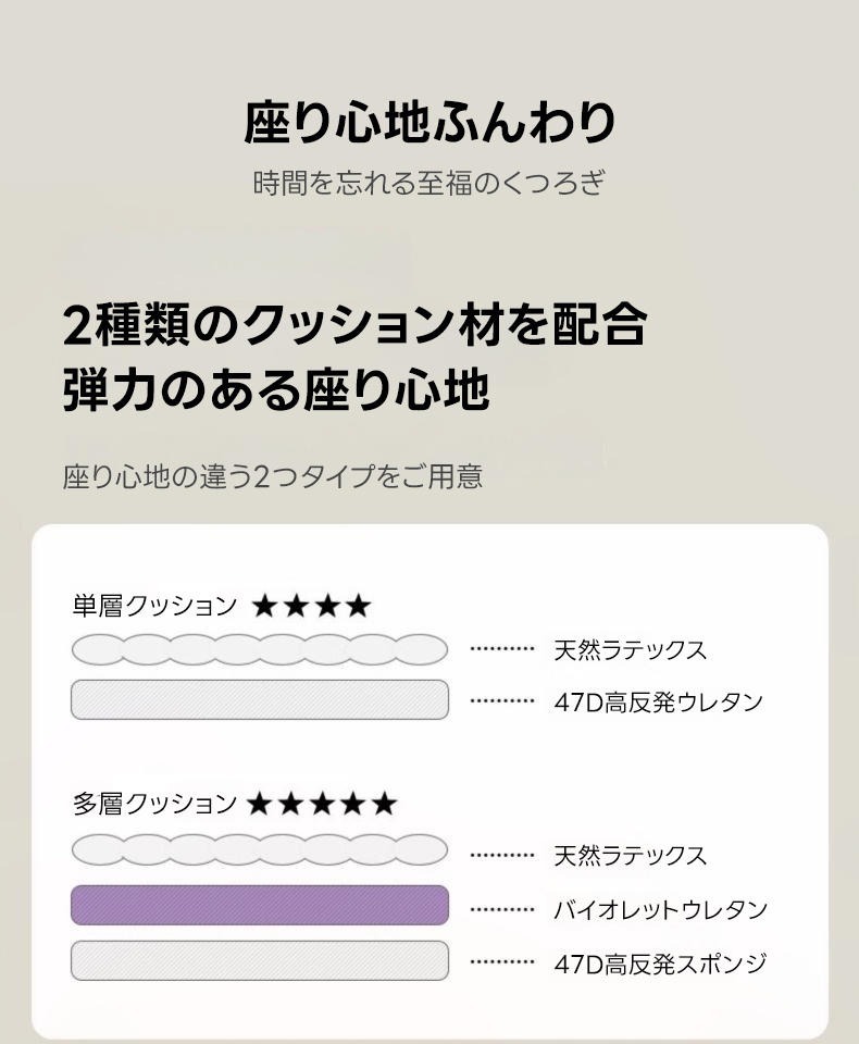 - 【高品質素材で快適な座り心地】:フランネル生地を使用し、肌触りが良く、耐久性にも優れています。天然ラテックスと高反発ウレタンのクッションで、長時間座っても疲れにくい設計です。