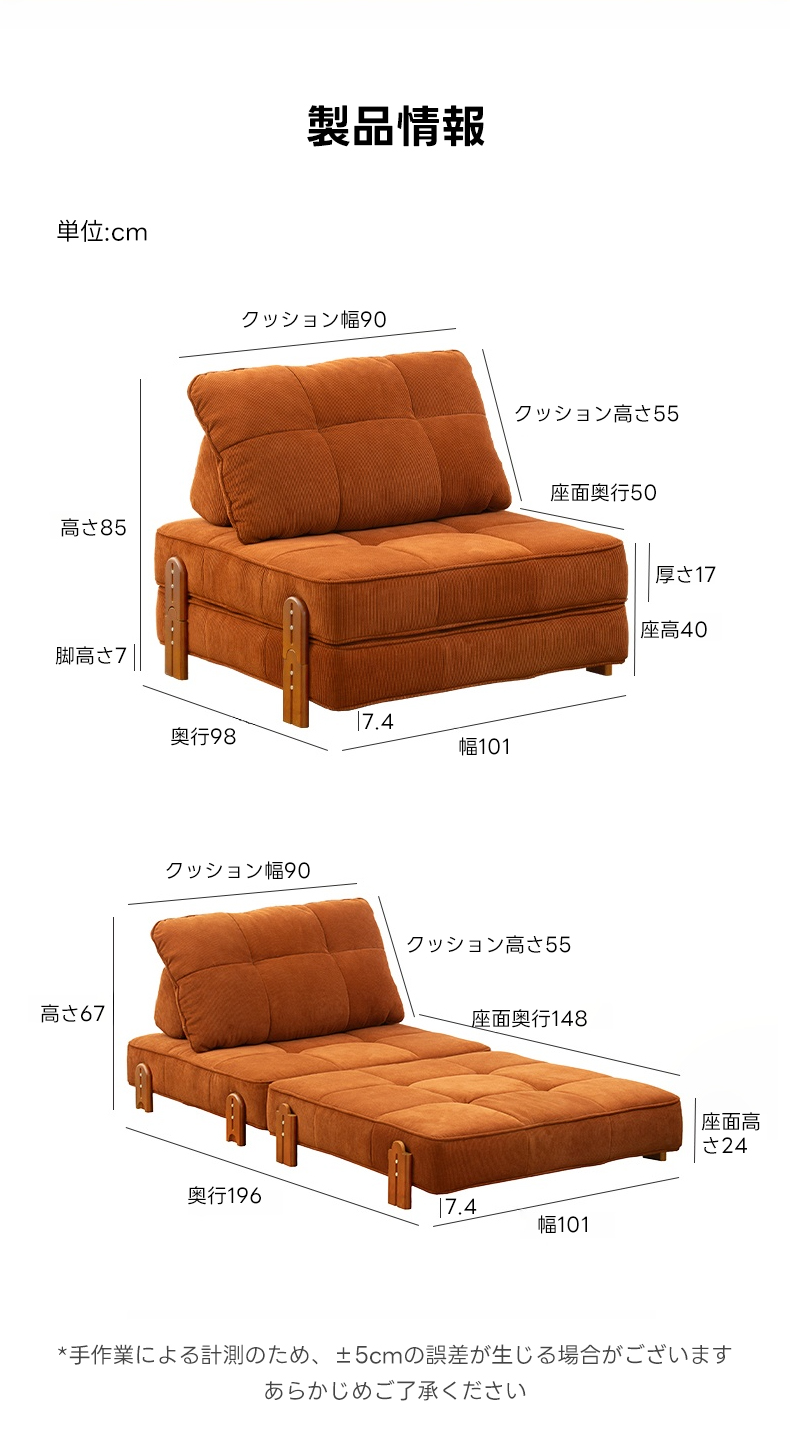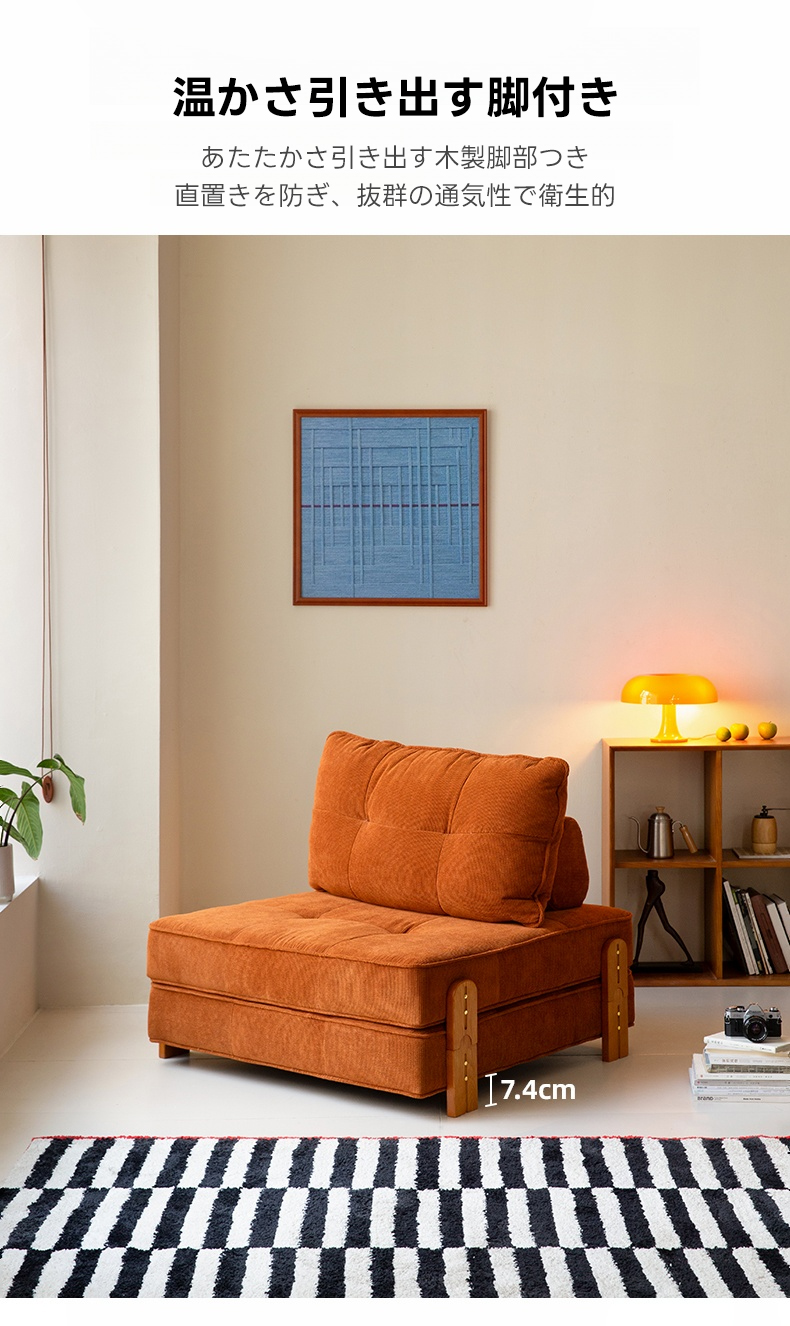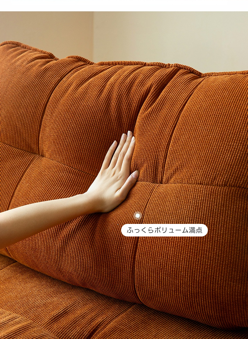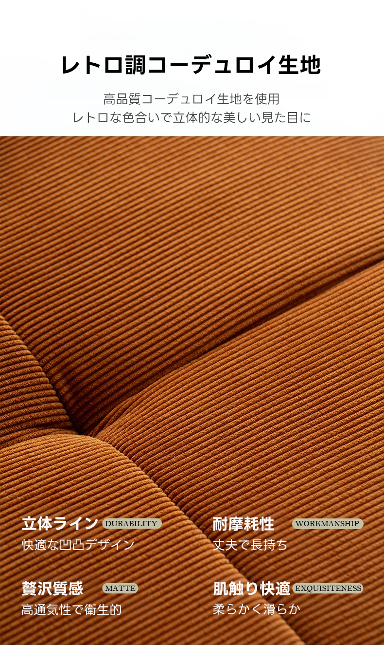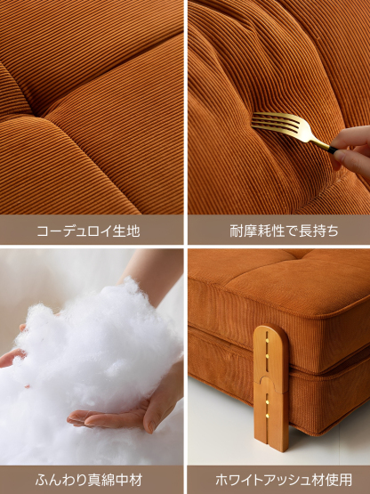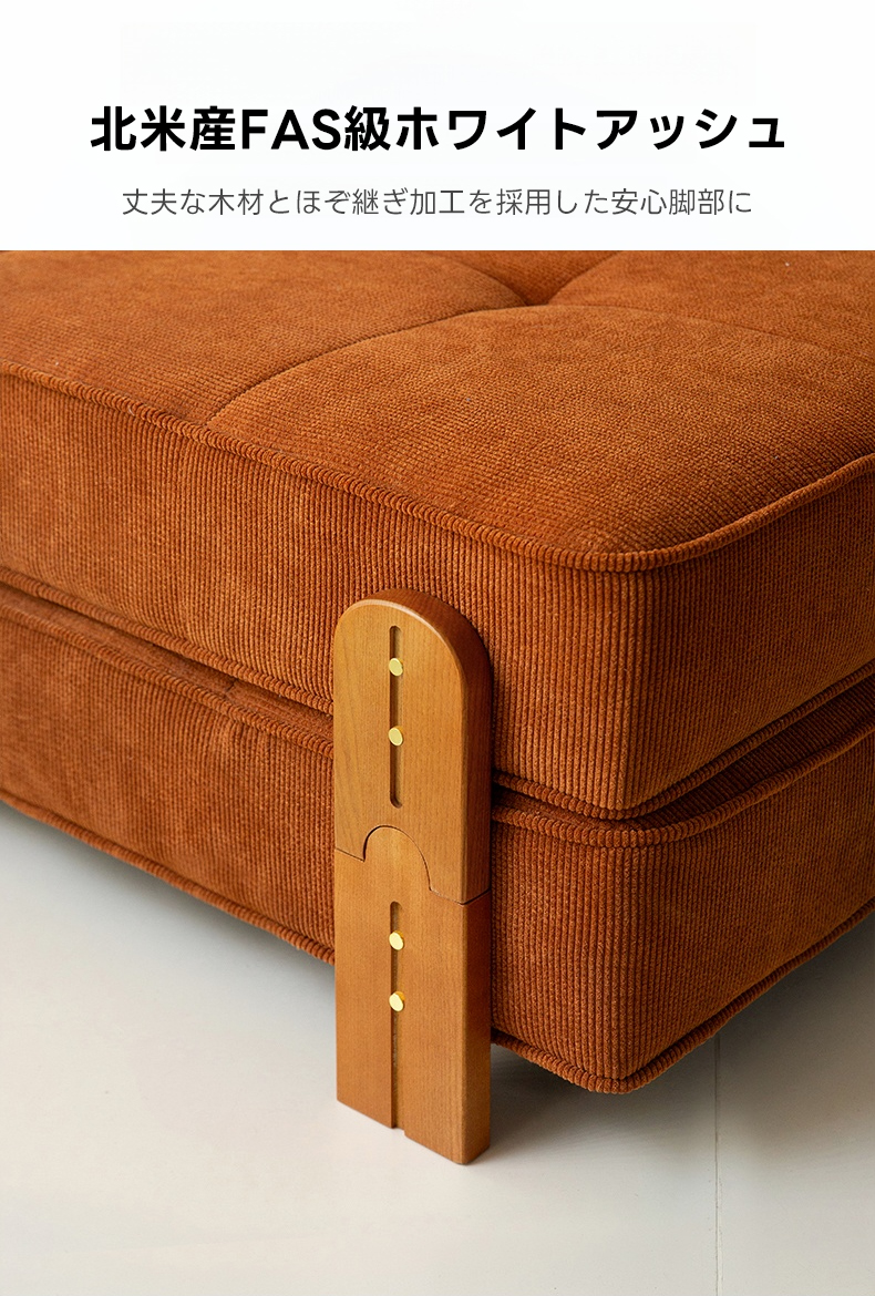 - 【高品質素材】:高品質なコーデュロイ生地とフランネル生地を使用し、耐摩耗性があり長持ちします。クッションには真綿を使用し、座面には35D高反発ウレタンを採用。脚部にはホワイトアッシュ材を使用し、耐久性と安定感があります。