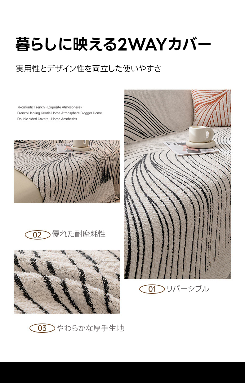 - 【リバーシブルデザインで気分に合わせて模様替え】:フレンチレトロラインソファカバーは、表裏で異なるデザインを楽しめるリバーシブル仕様。気分や季節に合わせて簡単に模様替えが可能で、インテリアに新鮮さをプラスします。