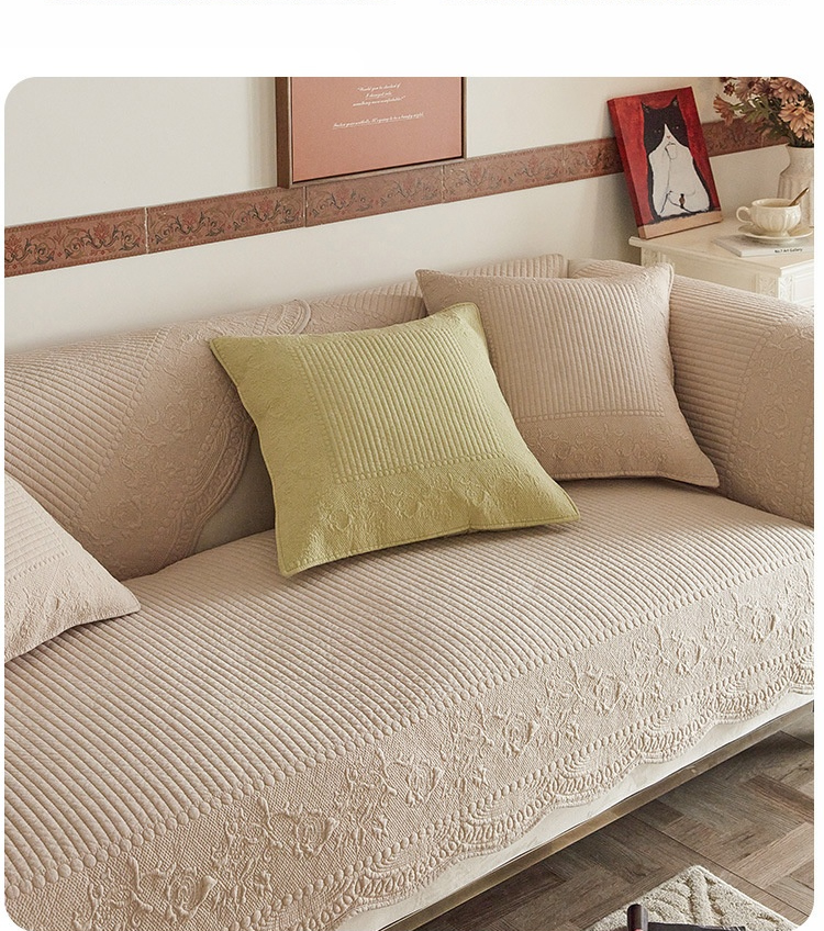 - 【抜群の機能性と快適さ】このコットンソファカバーは、滑り止め機能を備え、ズレを防止し、快適な使用感を提供します。高品質の水洗いコットン生地を使用し、柔らかく肌触りが良いです。毛玉ができにくい高密度の織り方が特徴です。