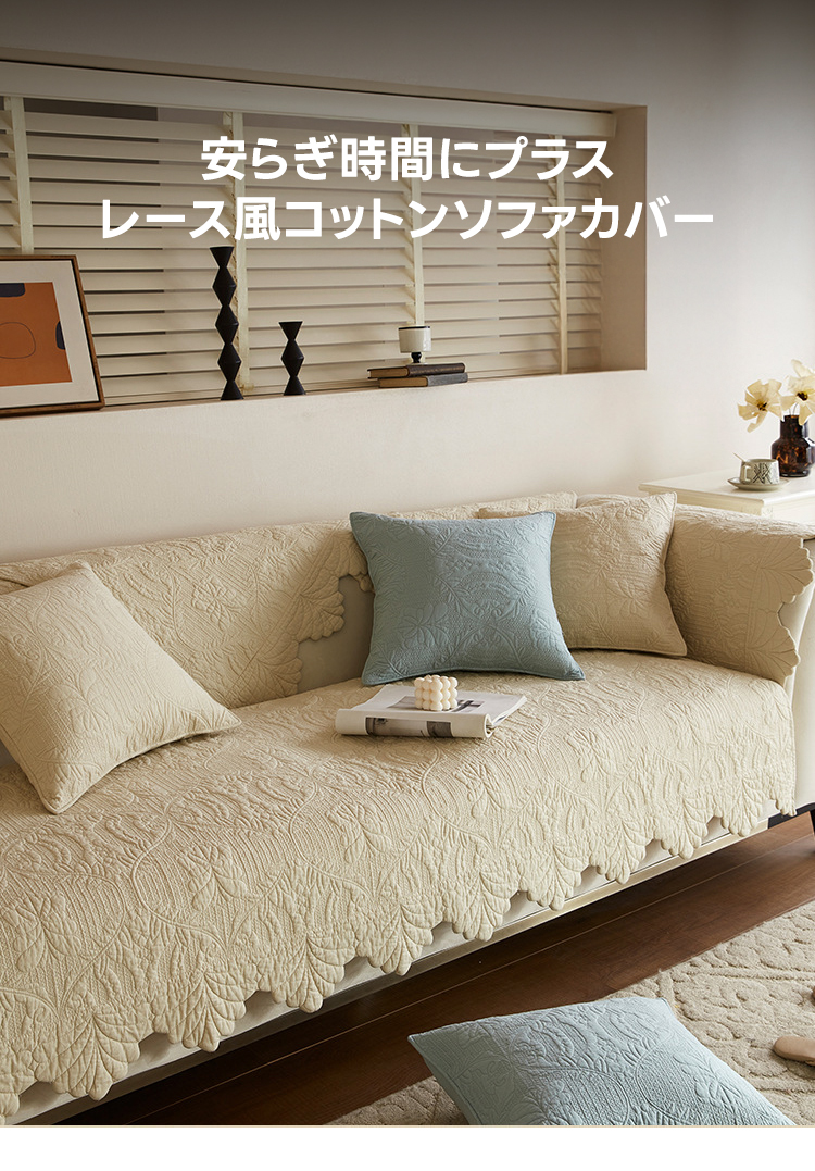 レース風コットンソファカバー