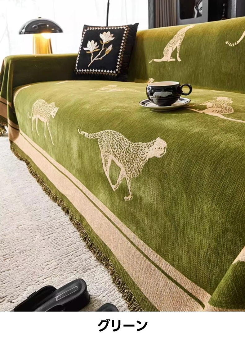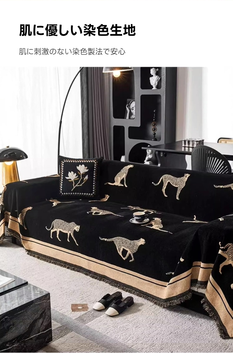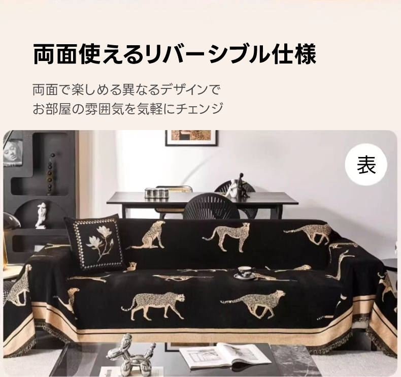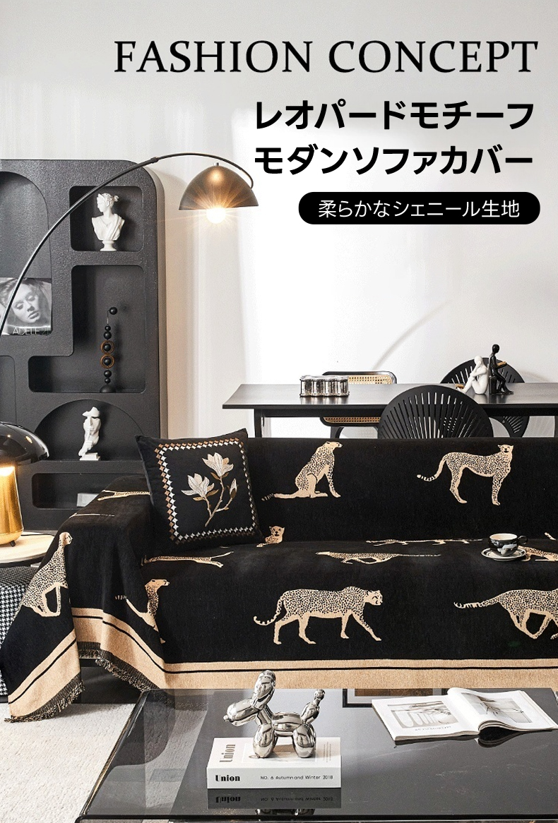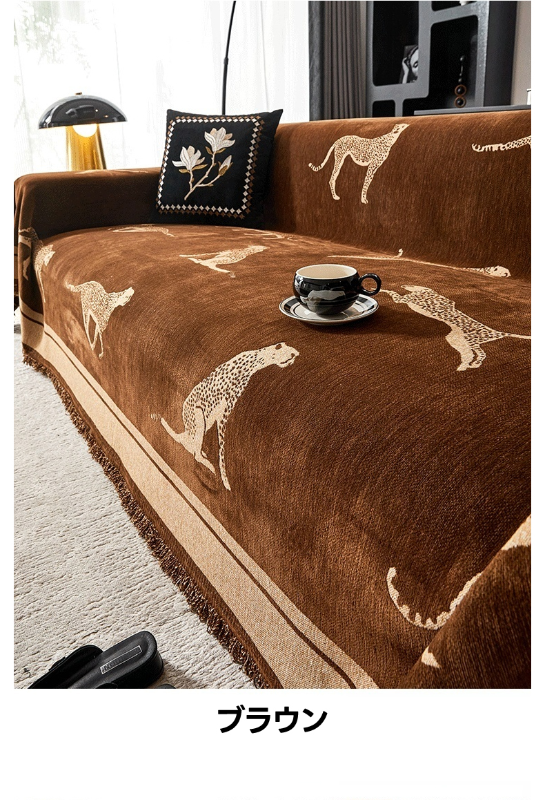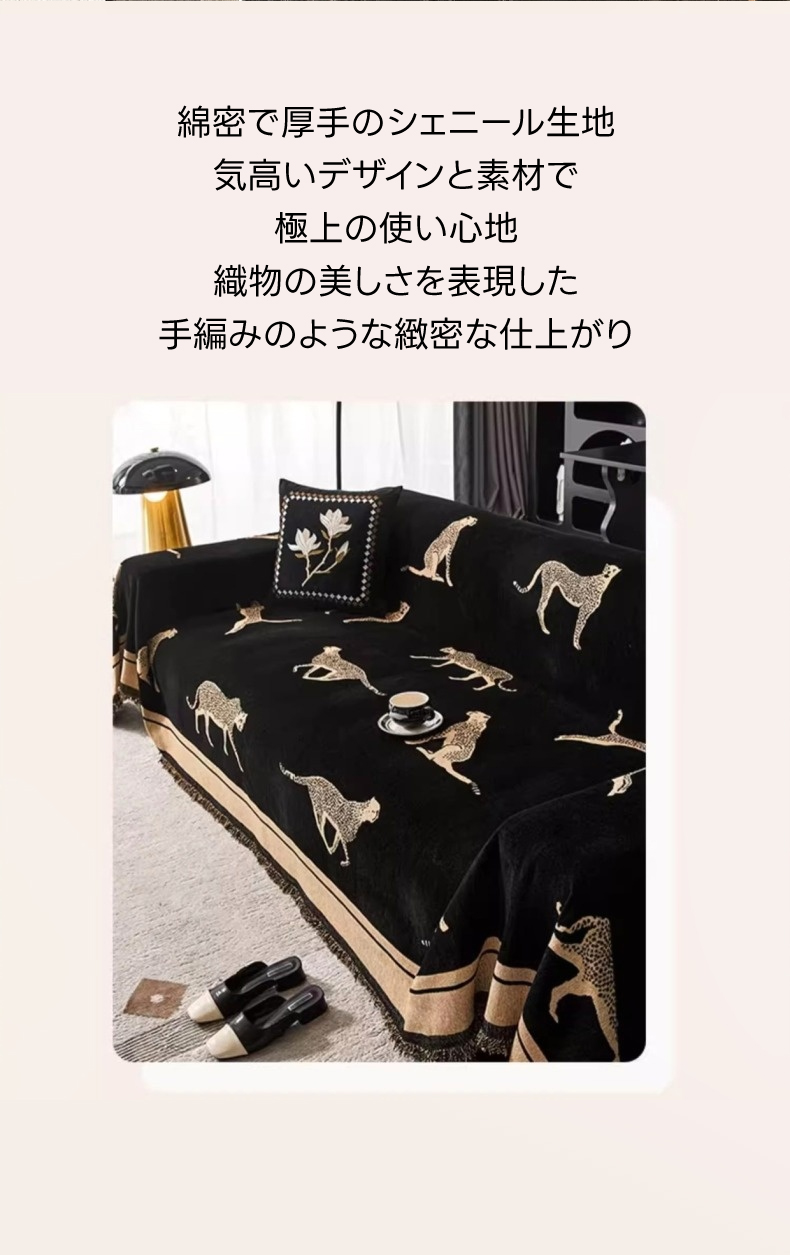 - 【ヴィンテージ感溢れるデザイン】: レオパードモチーフが施されたモダンでクラシックなソファカバーは、リビングをスタイリッシュに演出します。シェニール生地を使用し、肌触りが良く、長時間の使用でも快適です。