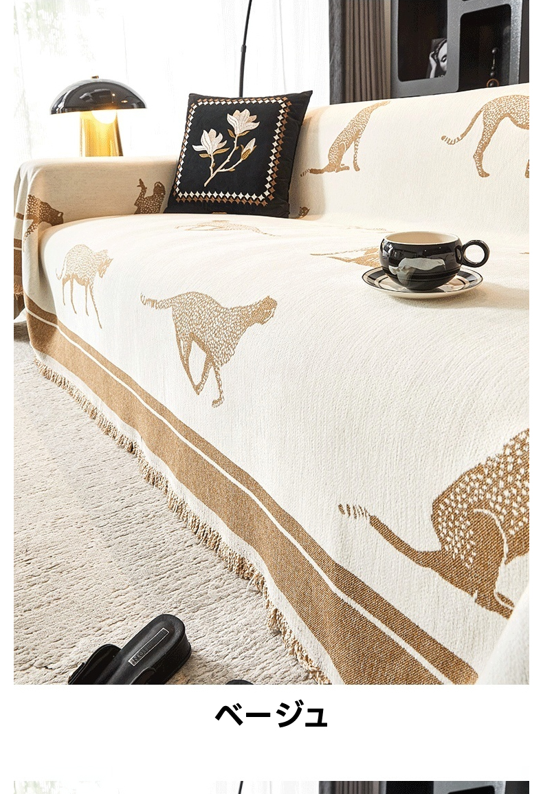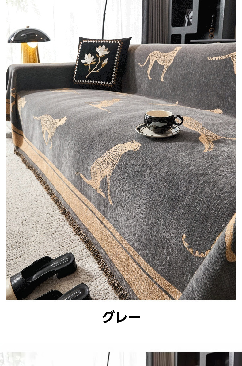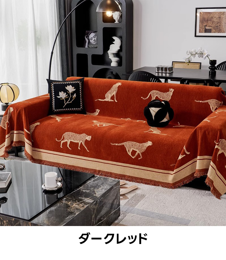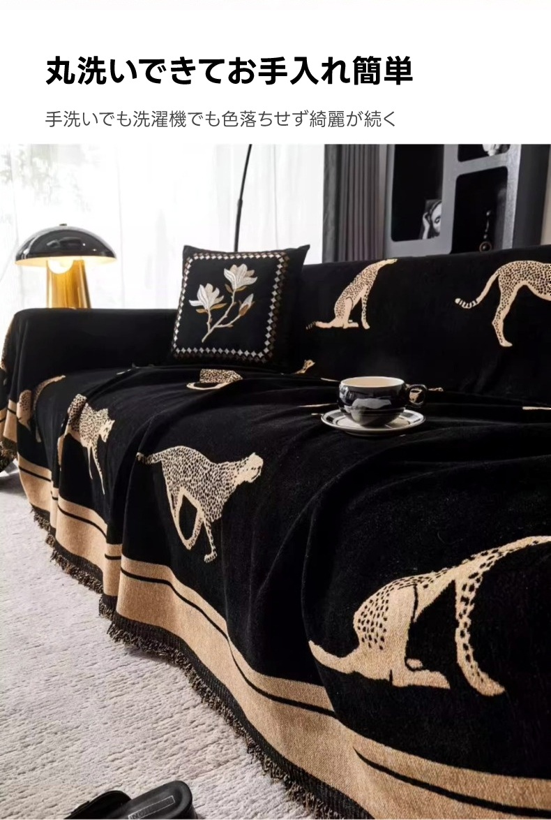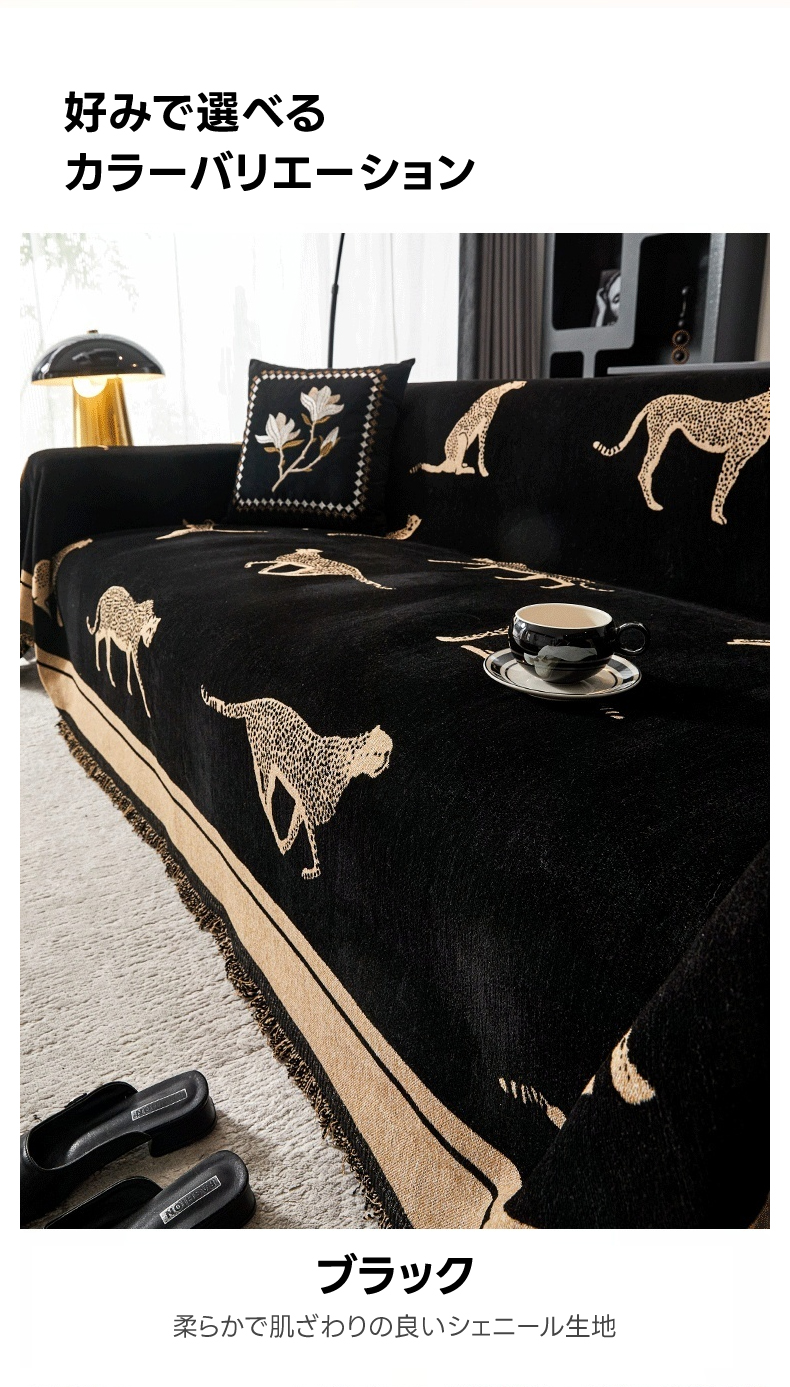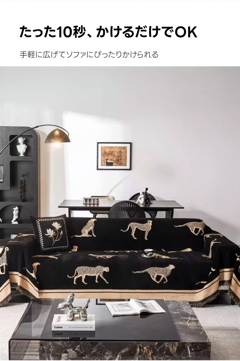 - 【ヴィンテージ感溢れるデザイン】: レオパードモチーフが施されたモダンでクラシックなソファカバーは、リビングをスタイリッシュに演出します。シェニール生地を使用し、肌触りが良く、長時間の使用でも快適です。