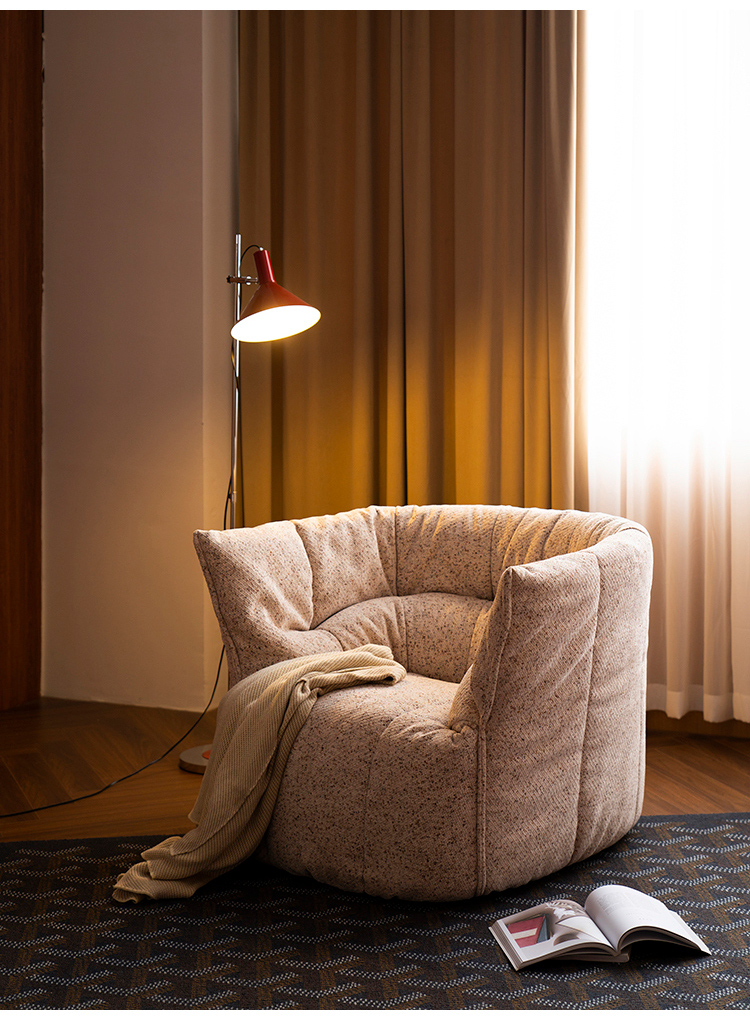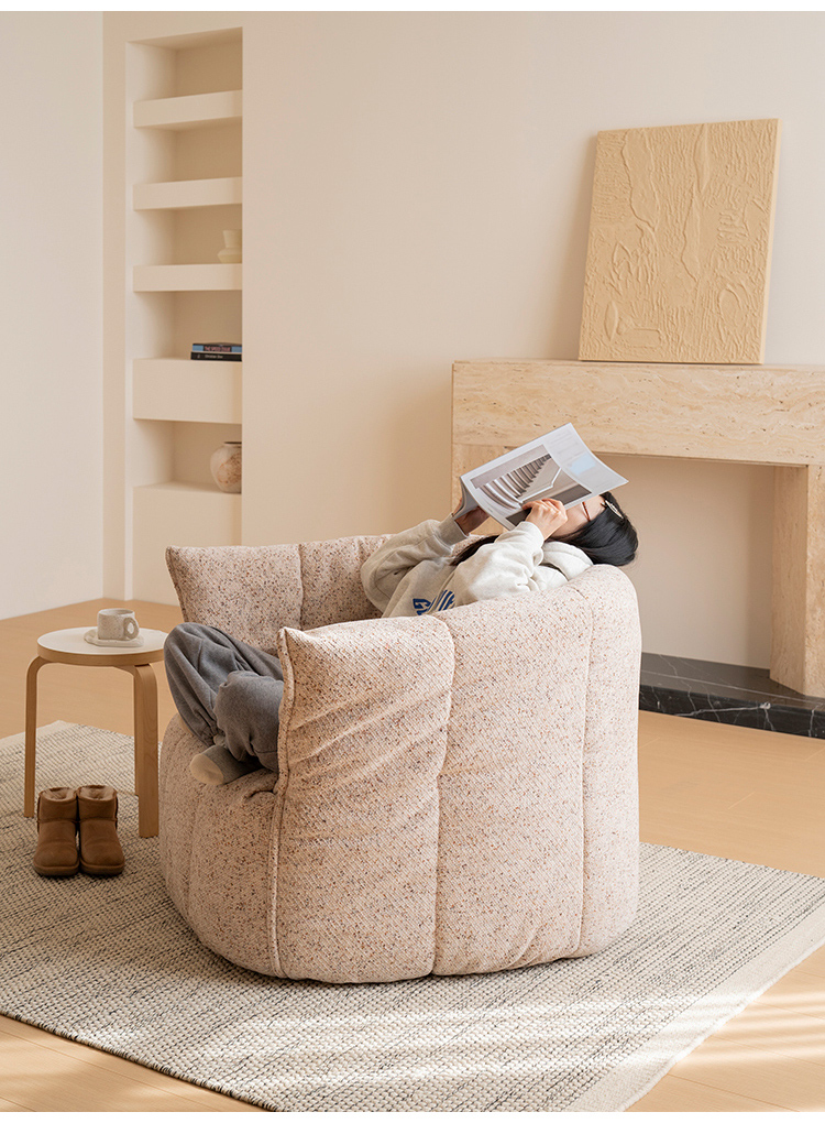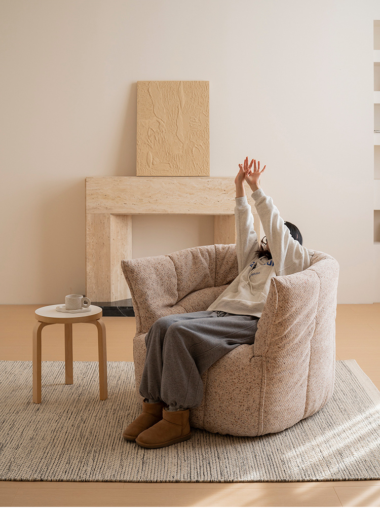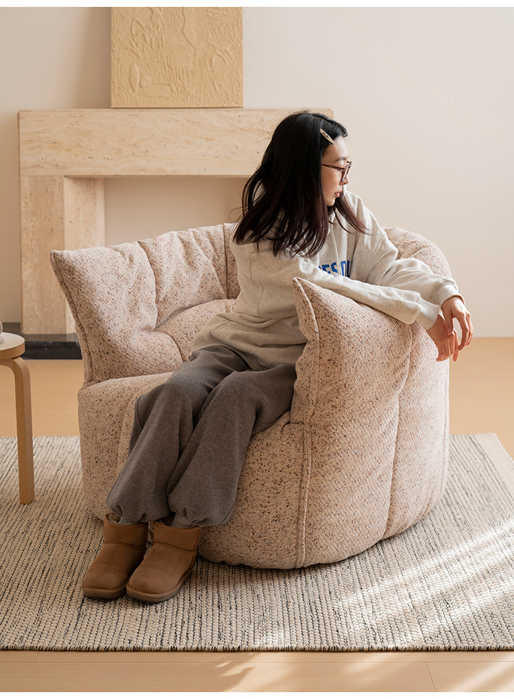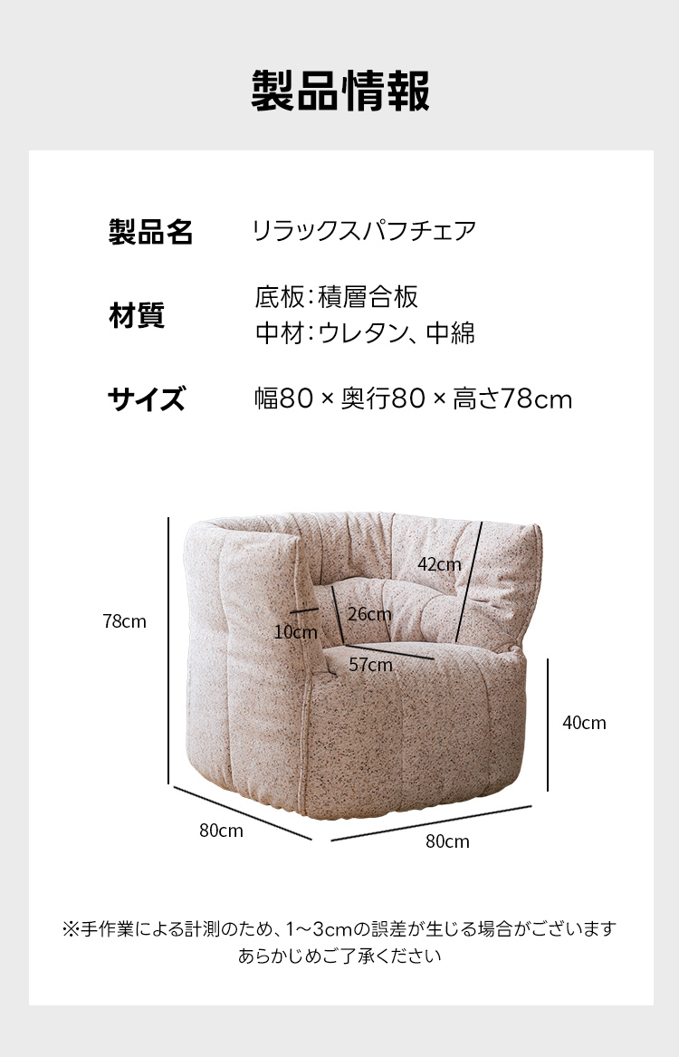 - 【快適なリラックス空間を提供】リラックスパフチェアは、北欧風デザインとベビーピンクの柔らかい色合いで、リビングに温かみを加えます。完成品としてお届けするため、組み立て不要で届いたその日から使用可能です。快適な座り心地を提供し、読書やテレビ鑑賞などのリラックスタイムに最適です。
