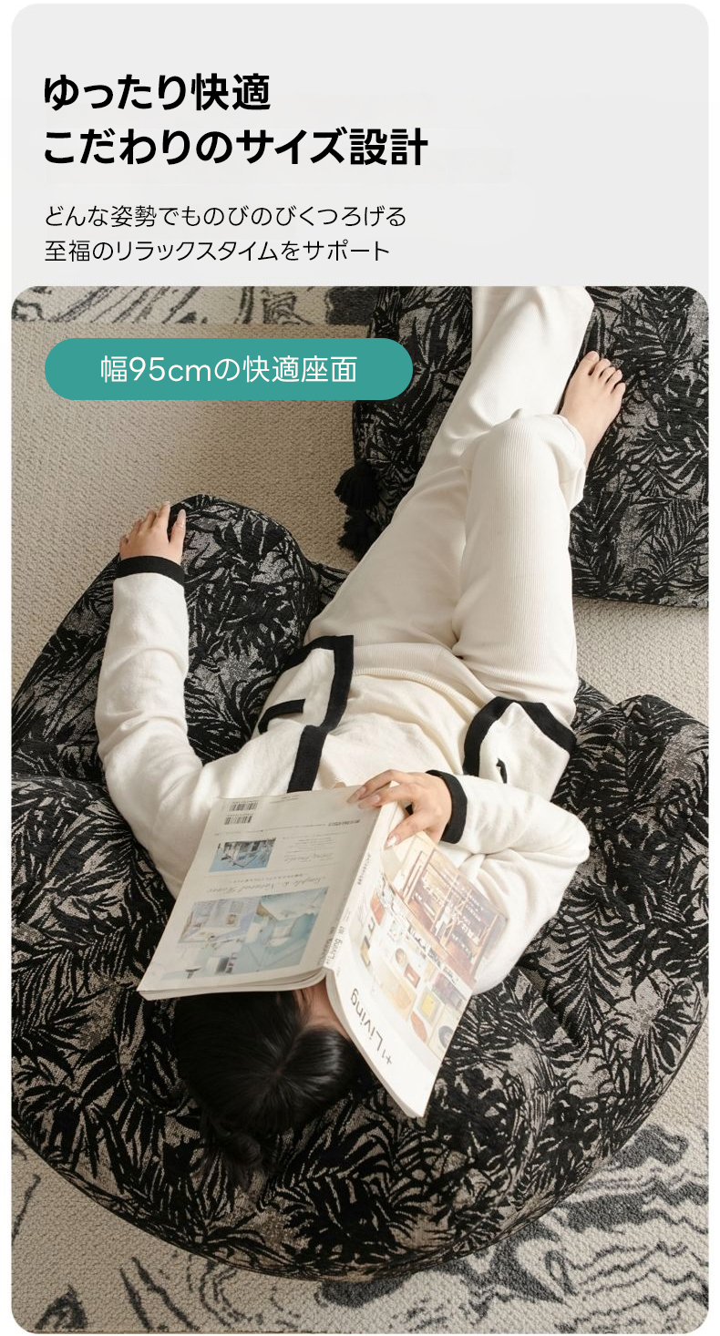 - 【快適な座り心地と広々とした座面】高品質のEPPビーズとウレタンを使用したバンブークッションソファは、体の動きに合わせてフィットし、長時間座っても快適です。幅95cmの座面は、どんな姿勢でもくつろげるサイズ設計で、リラックスタイムをサポートします。