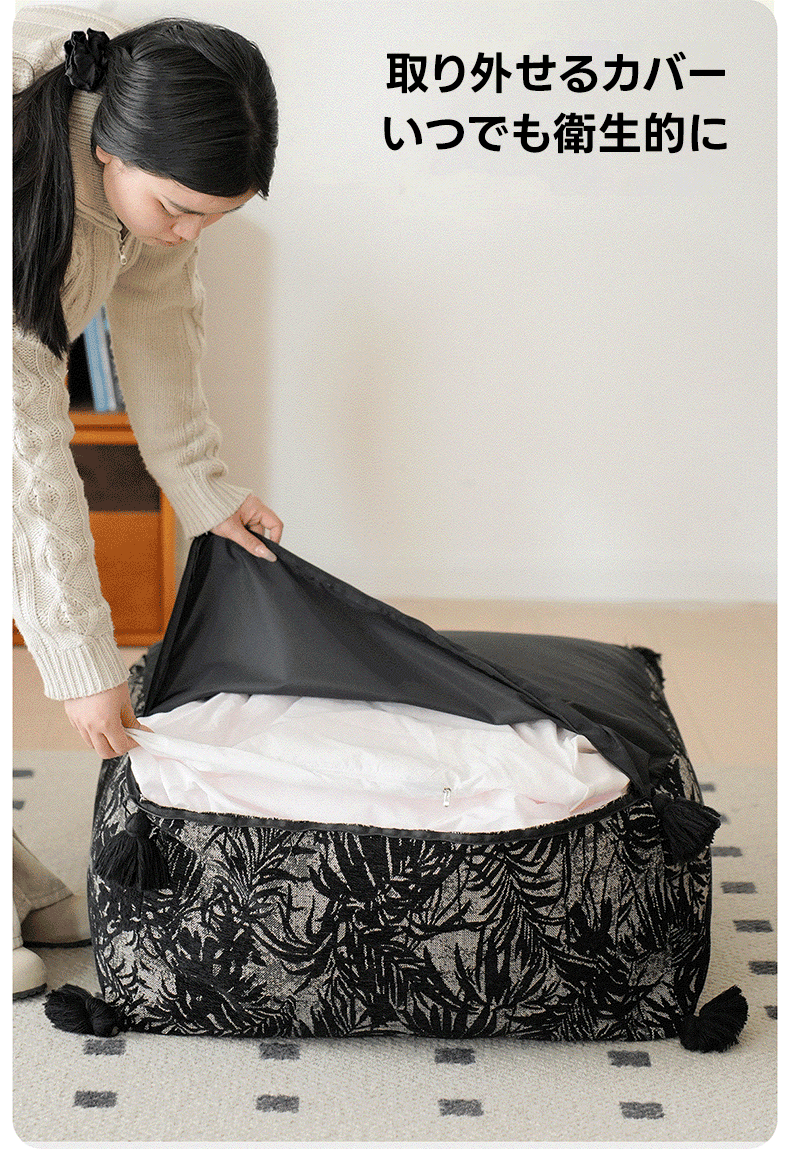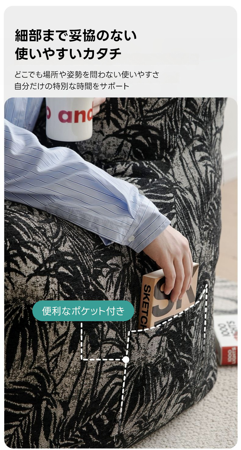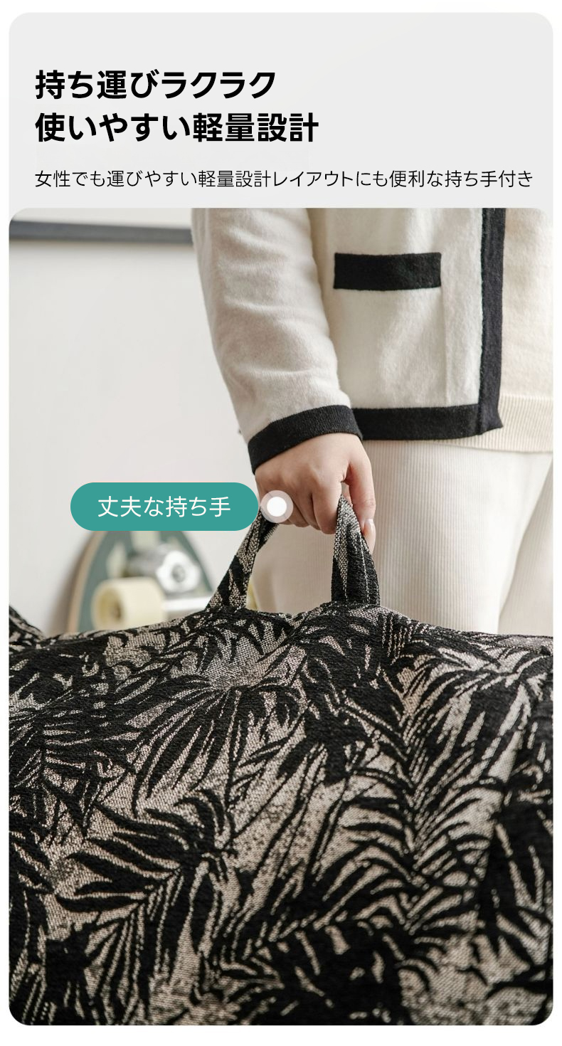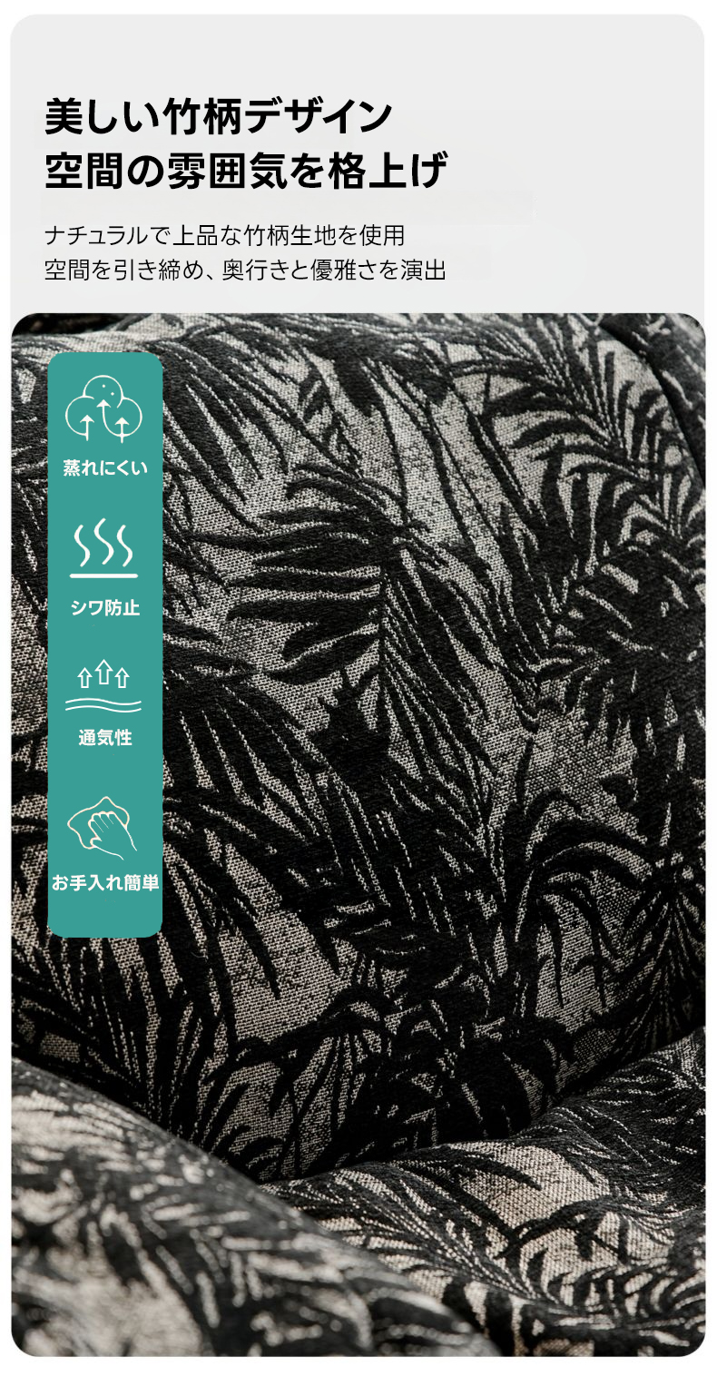 - 【高品質な素材とデザイン】ブラックのファブリックに竹柄を施したデザインは、どんな空間にも高級感と落ち着きをもたらします。軽量設計で移動も簡単、便利な持ち手付きでレイアウトの変更も楽々です。取り外し可能なカバーでお手入れも簡単です。