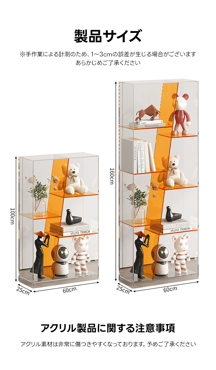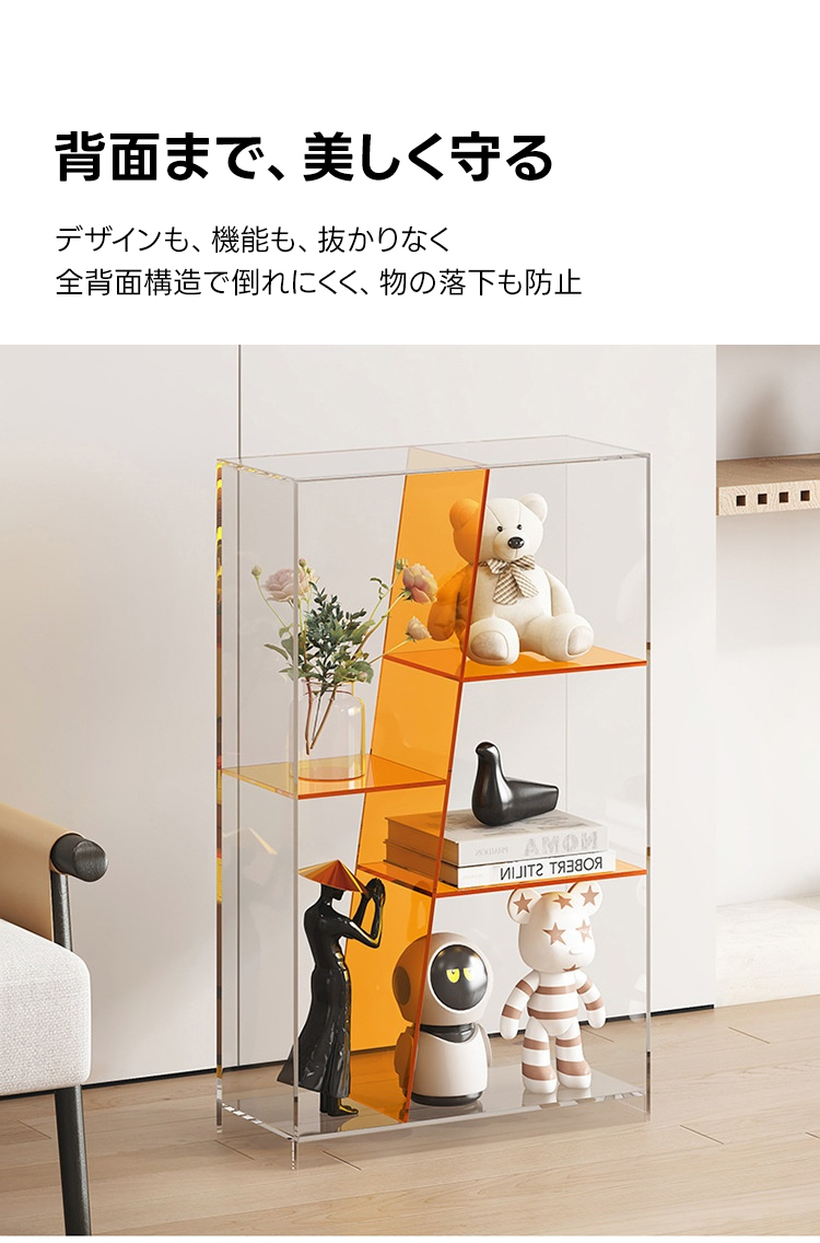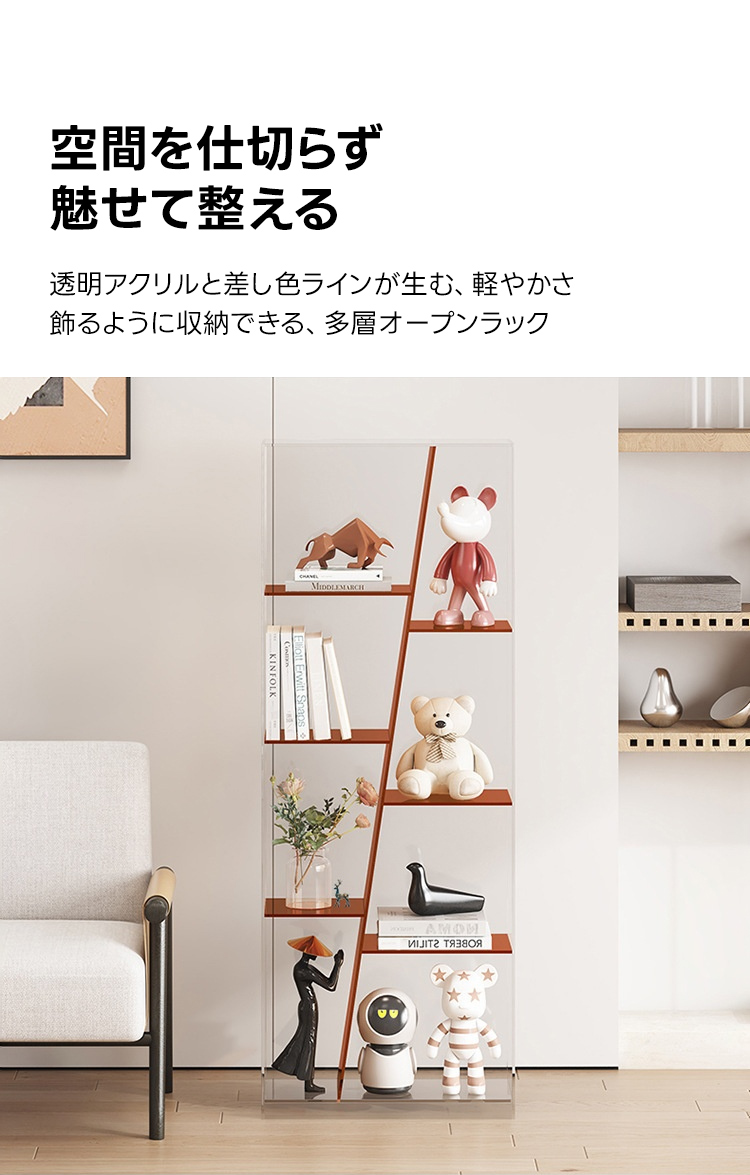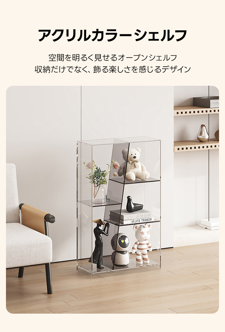 - 【多機能収納ラック】:アクリル グロウエッジラックは、モダンでスタイリッシュなデザインが特徴の収納家具です。高透明度のアクリル素材を使用し、光を通すことで空間を明るく見せる効果があります。書籍や小物を美しくディスプレイしながら収納できる大容量設計です。