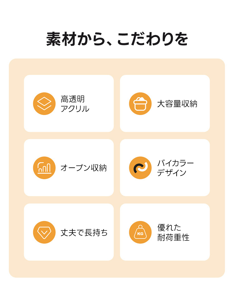 - 【高品質アクリル素材】:アクリル素材は丈夫で長持ちし、優れた耐荷重性を持っています。バイカラーデザインがアクセントとなり、インテリアに彩りを加えます。完成品でのお届けのため、組み立て不要で、届いたその日からすぐにご使用いただけます。