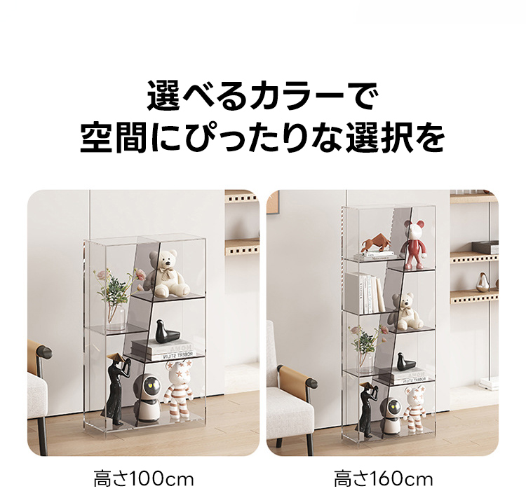 - 【多様なカラーバリエーション】:グレー、オレンジ、ピンク、ブルー、レッド、グリーン、ライトブラウン、ブラックといった豊富なカラー展開で、お部屋の雰囲気に合わせて選べます。高さ100cmと160cmの2種類のサイズがあり、設置場所や収納量に応じて最適なサイズを選べます。