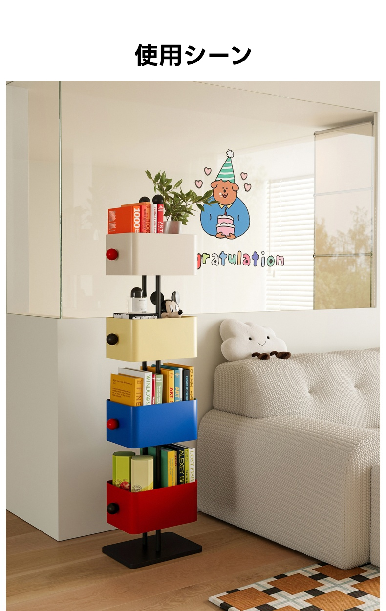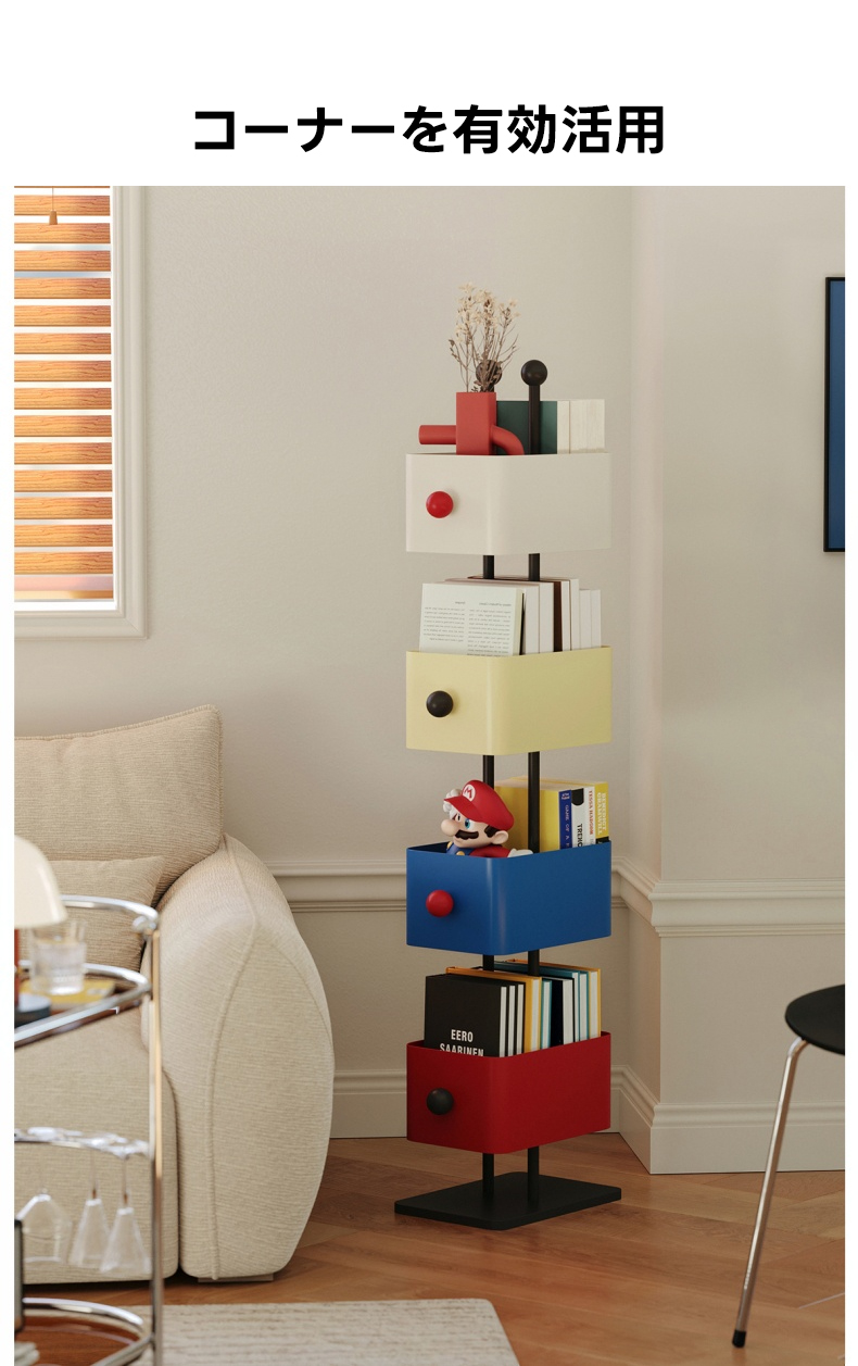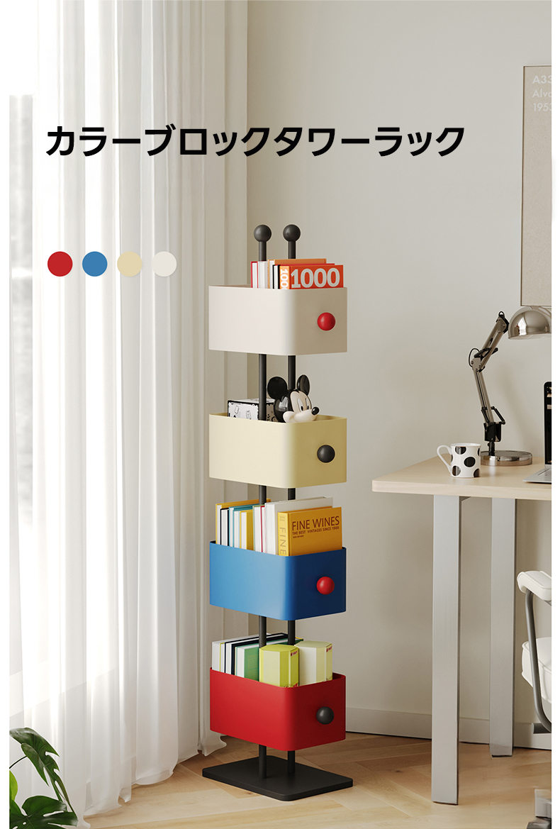- 【抜群の収納力とデザイン性】このカラーブロックタワーラックは、4段の収納エリアを備え、本や小物を整理整頓するのに最適です。カラフルなデザインが部屋に明るさと遊び心を加え、どんなインテリアにもマッチします。コンパクトなサイズで狭いスペースにも設置可能です。