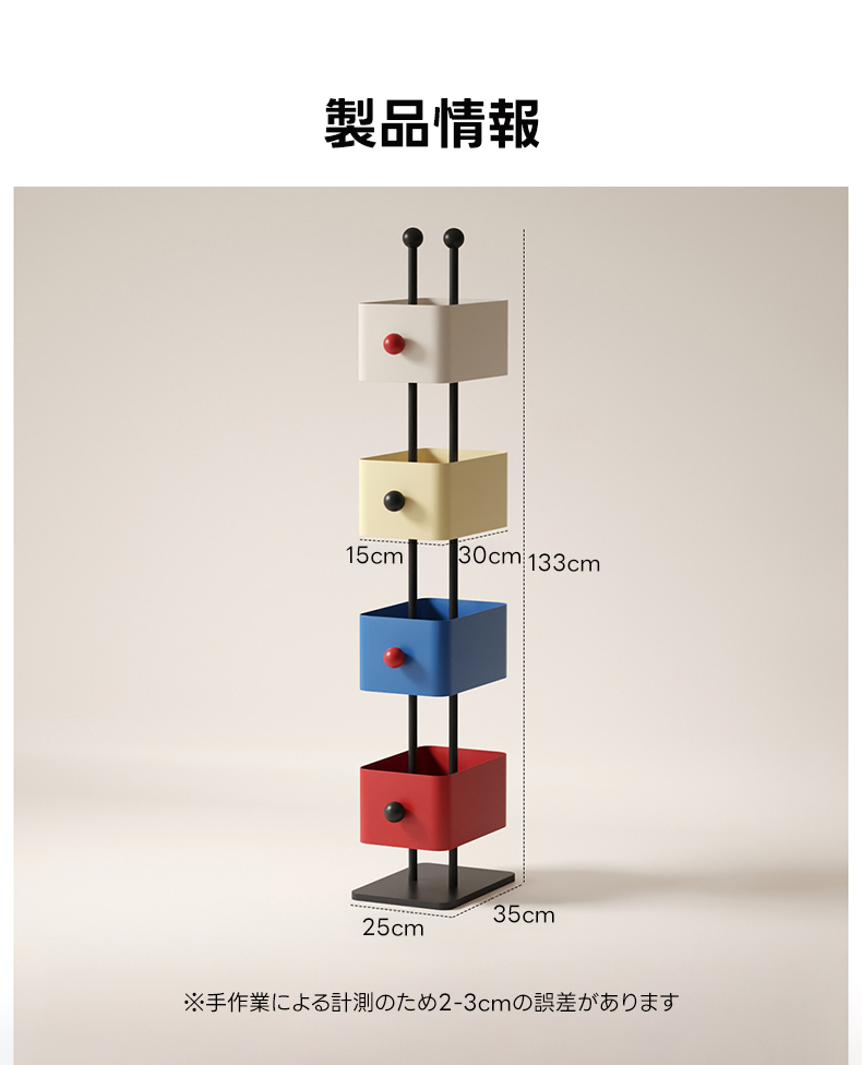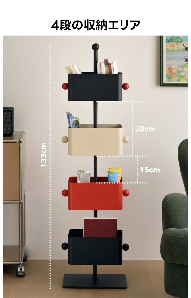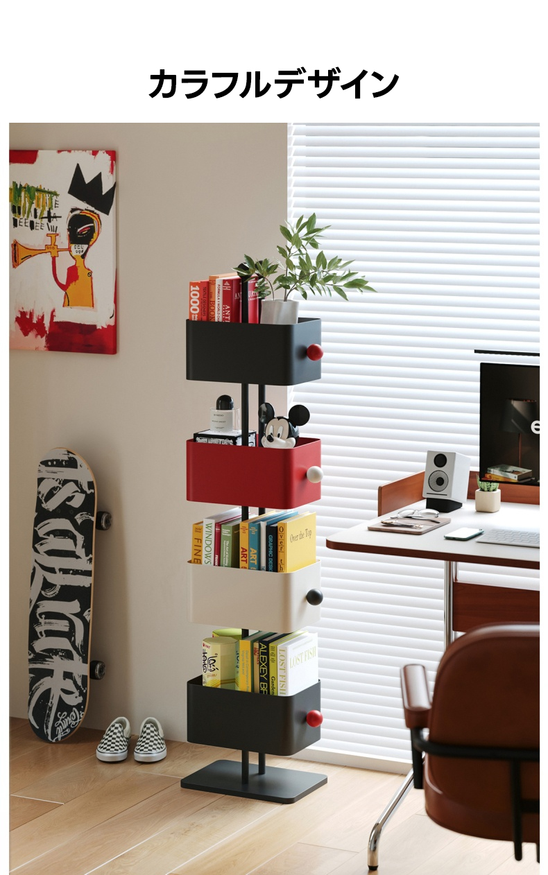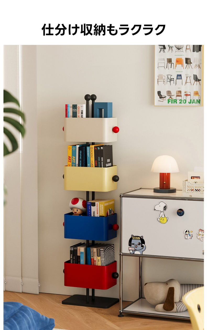 - 【抜群の収納力とデザイン性】このカラーブロックタワーラックは、4段の収納エリアを備え、本や小物を整理整頓するのに最適です。カラフルなデザインが部屋に明るさと遊び心を加え、どんなインテリアにもマッチします。コンパクトなサイズで狭いスペースにも設置可能です。