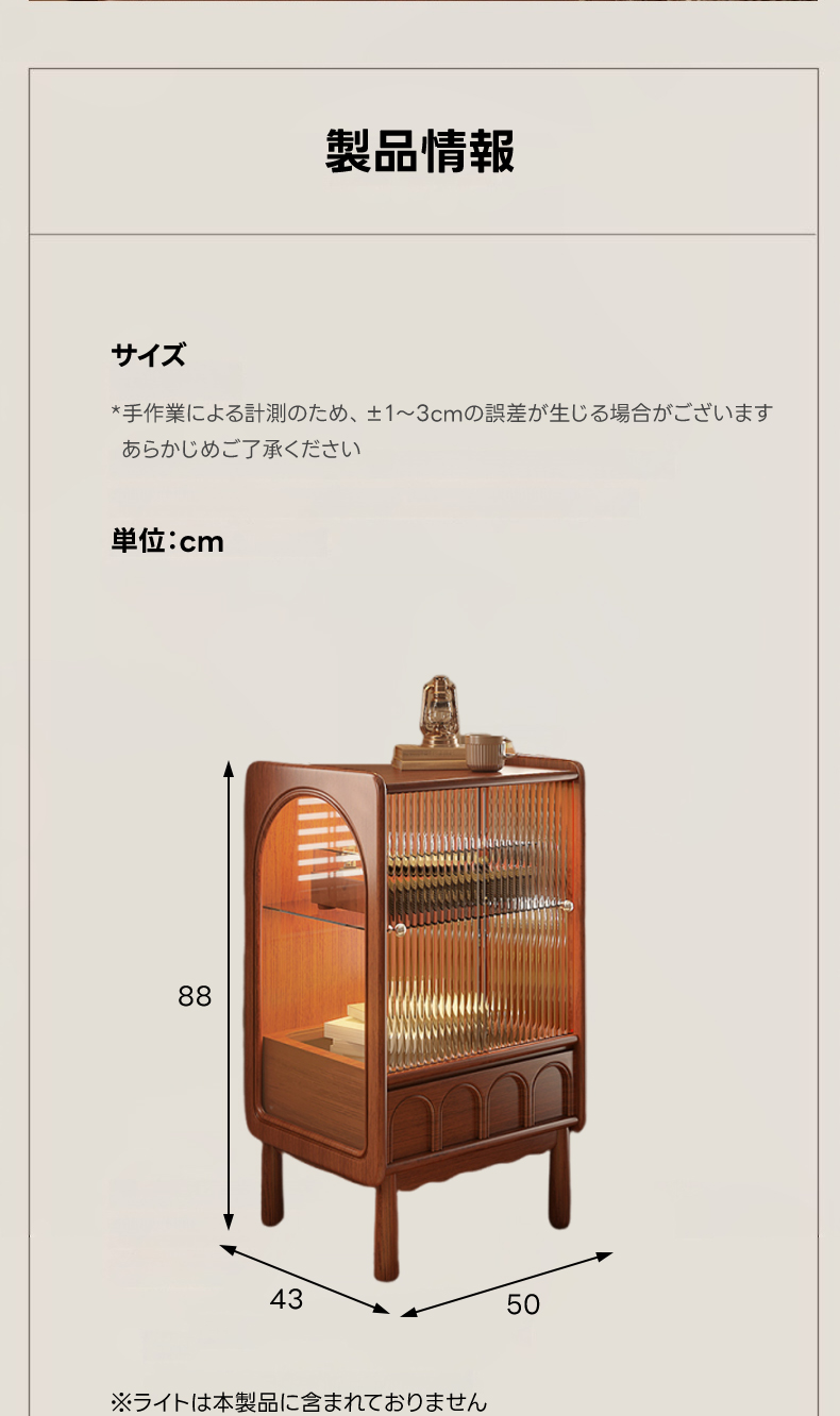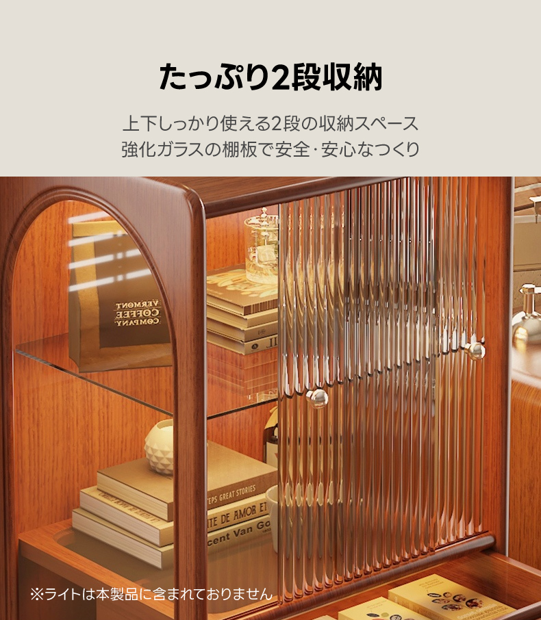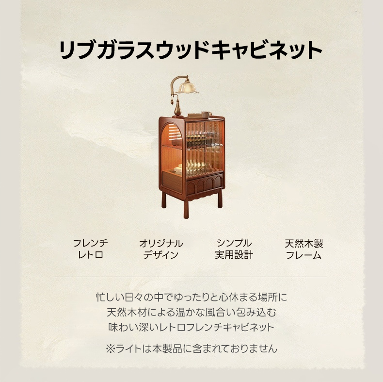 - 【ヴィンテージ感あふれるデザイン】:リブガラスウッドキャビネットは、フレンチレトロなスタイルで、どんなインテリアにも調和します。リブガラスが柔らかな光を演出し、アイテムをホコリから守ります。