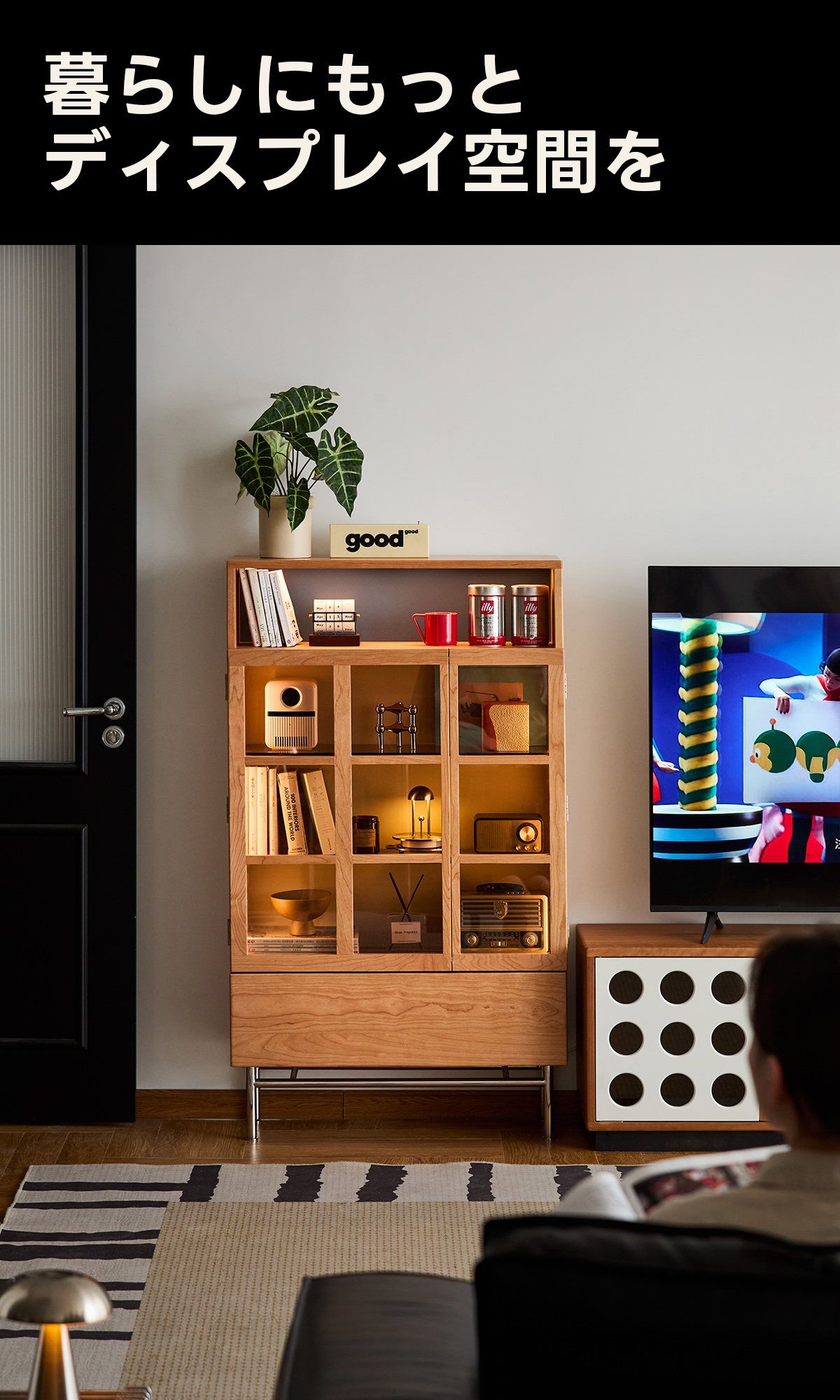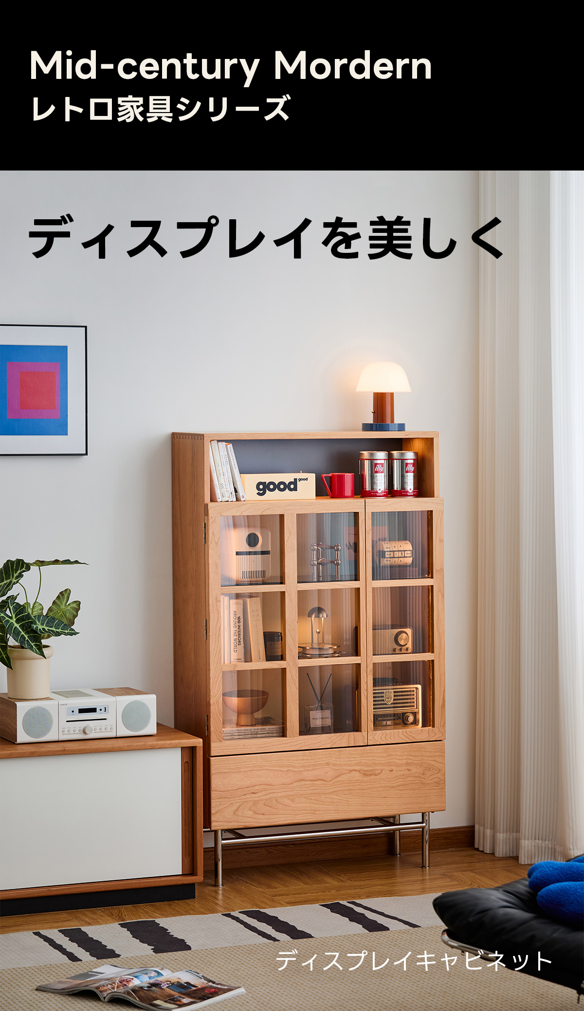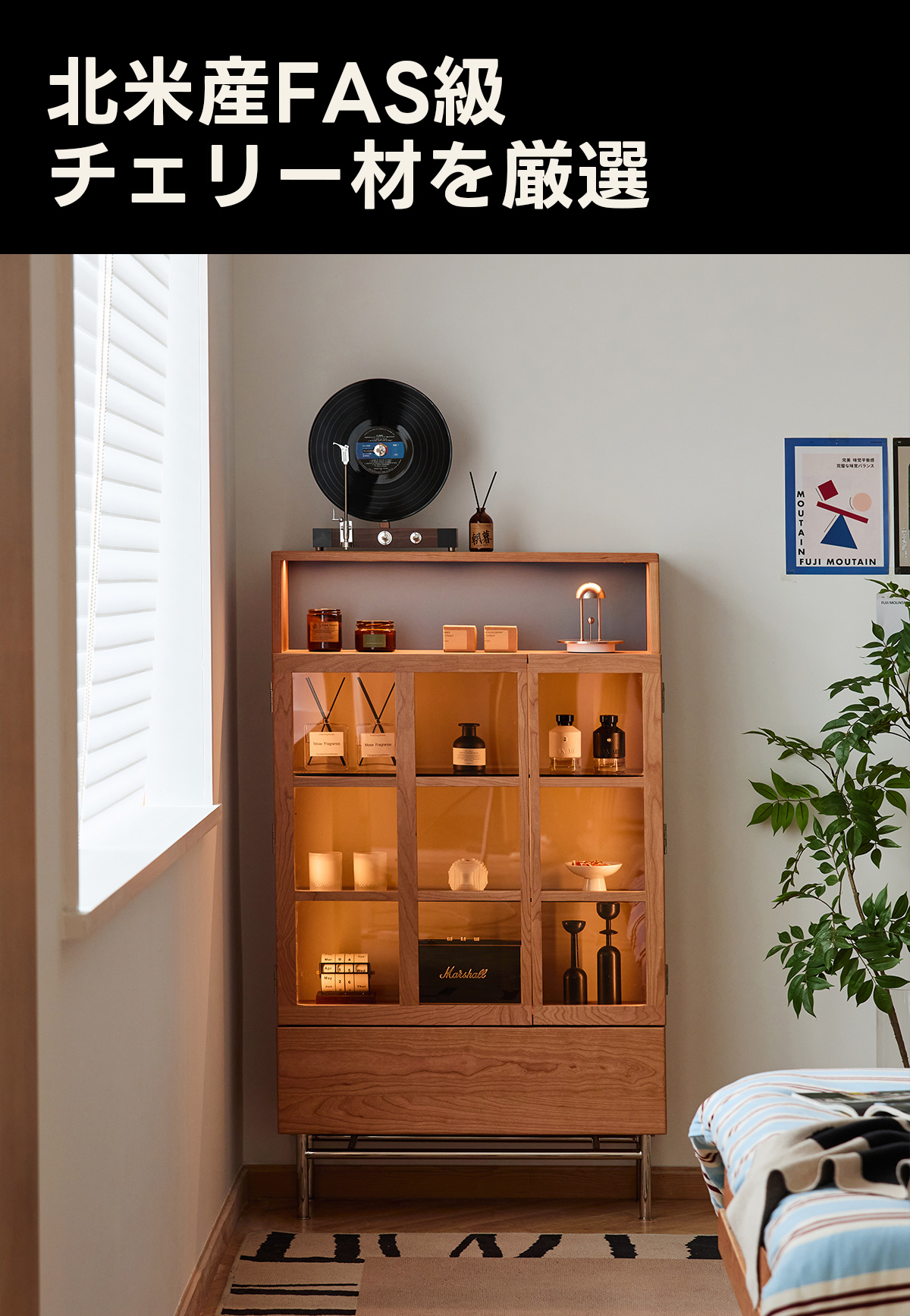 Woody Prime Cherry ナチュラルディスプレイキャビネット