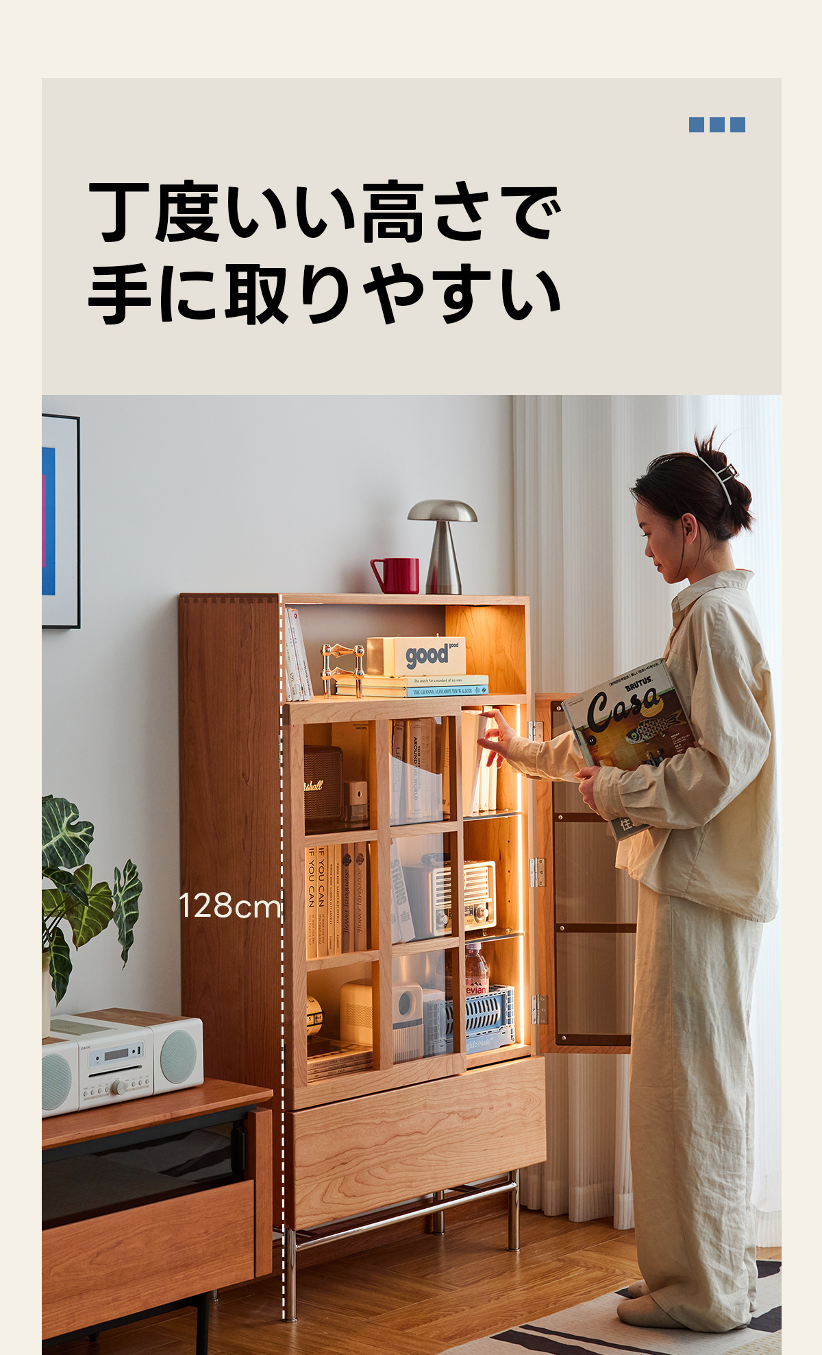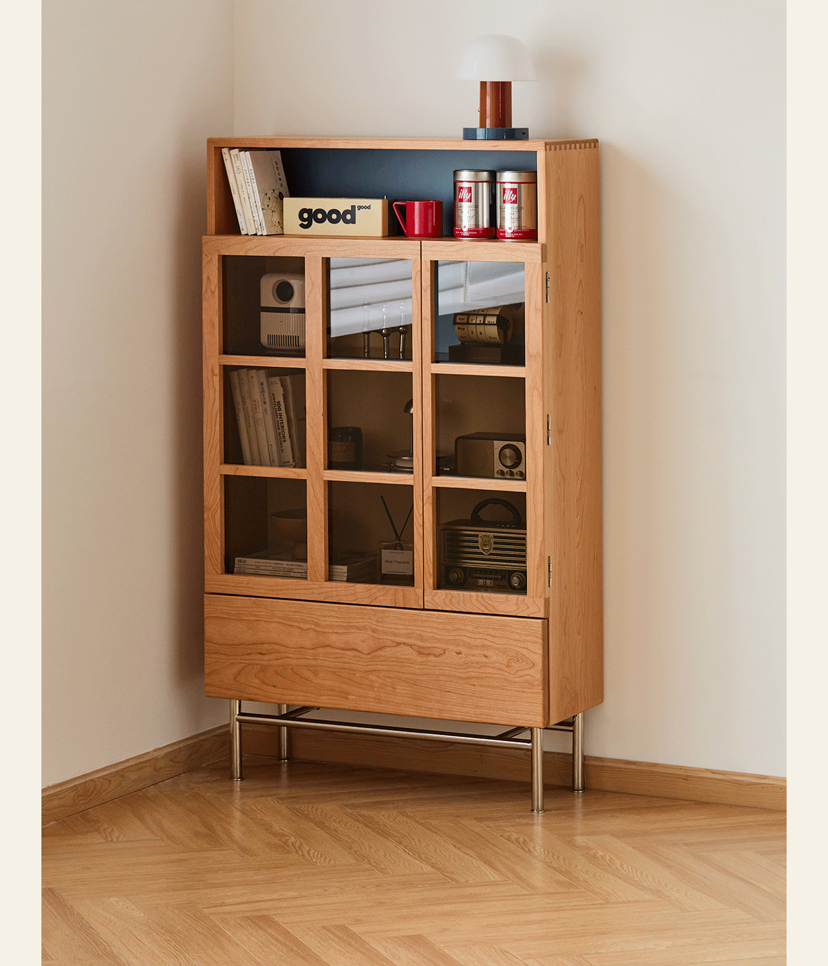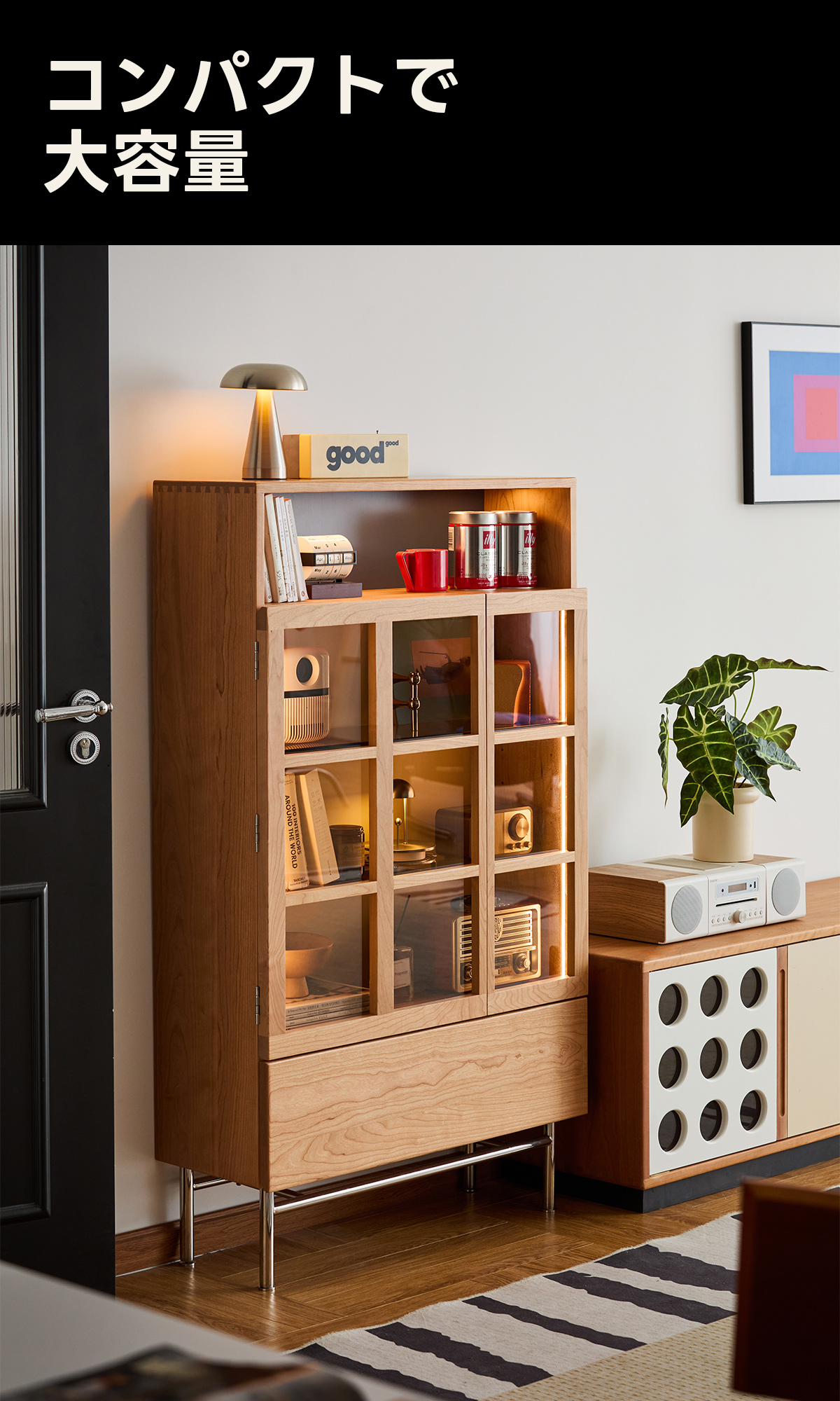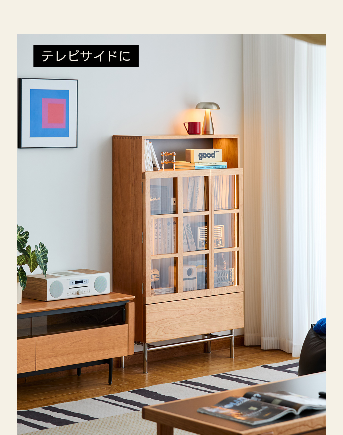 Woody Prime Cherry ナチュラルディスプレイキャビネット