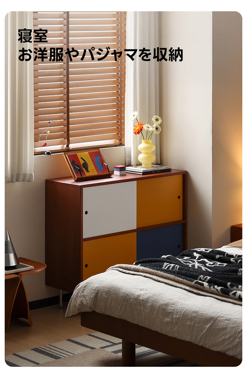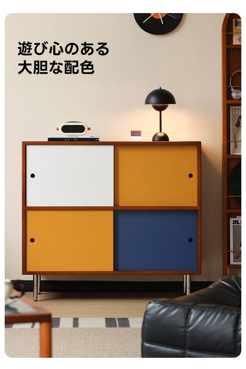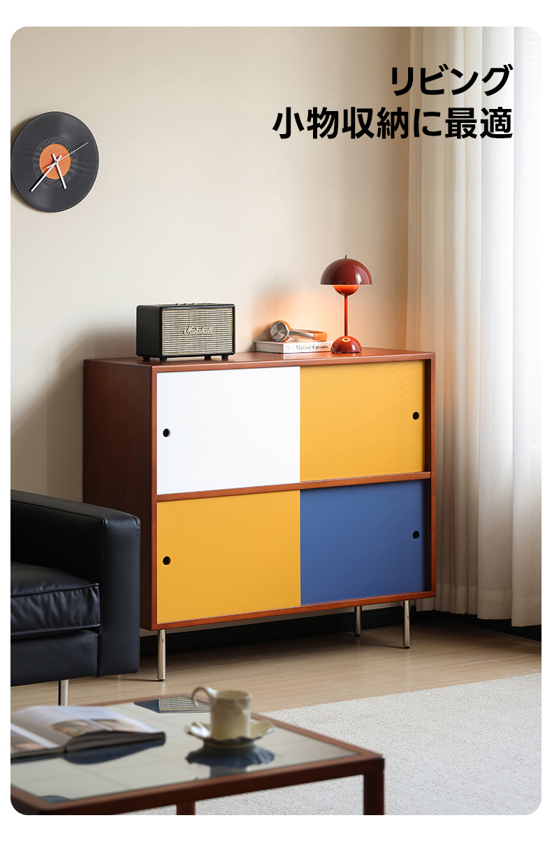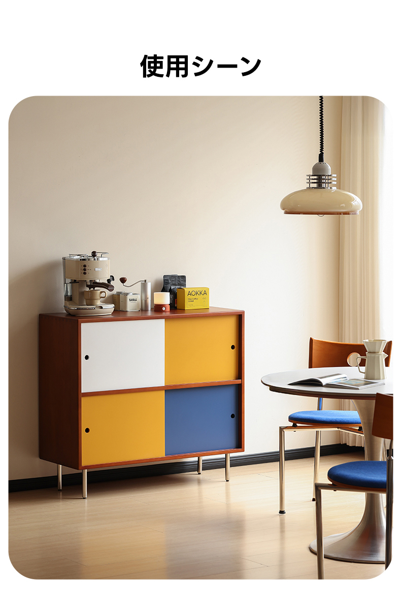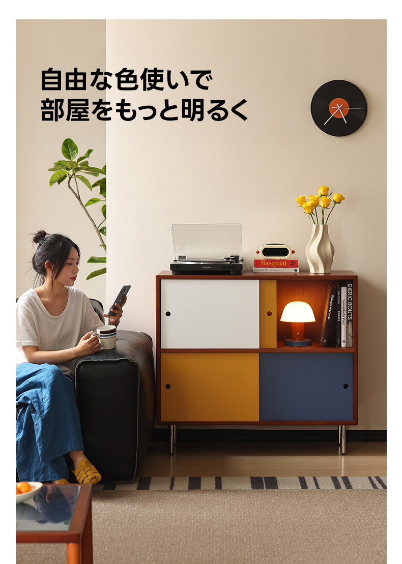 - 【北欧風デザイン】:このキャビネットは北欧風のデザインを採用し、カラフルな色使いが特徴です。部屋を明るく彩り、どんなインテリアにもマッチします。カップルやファミリーに最適な選択です。