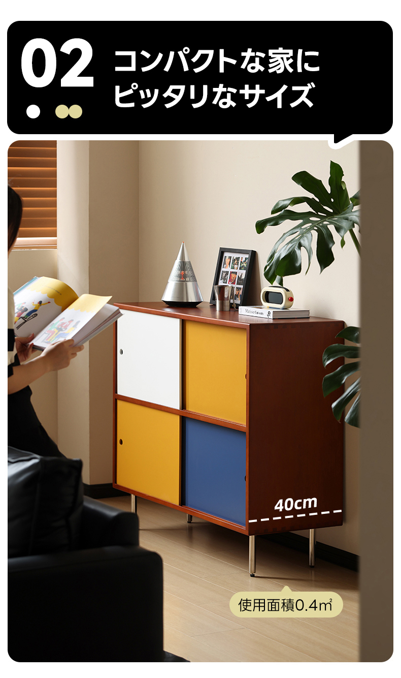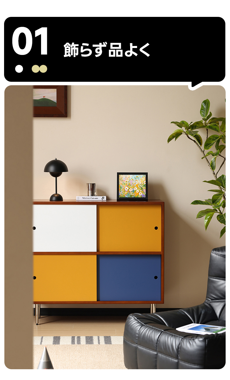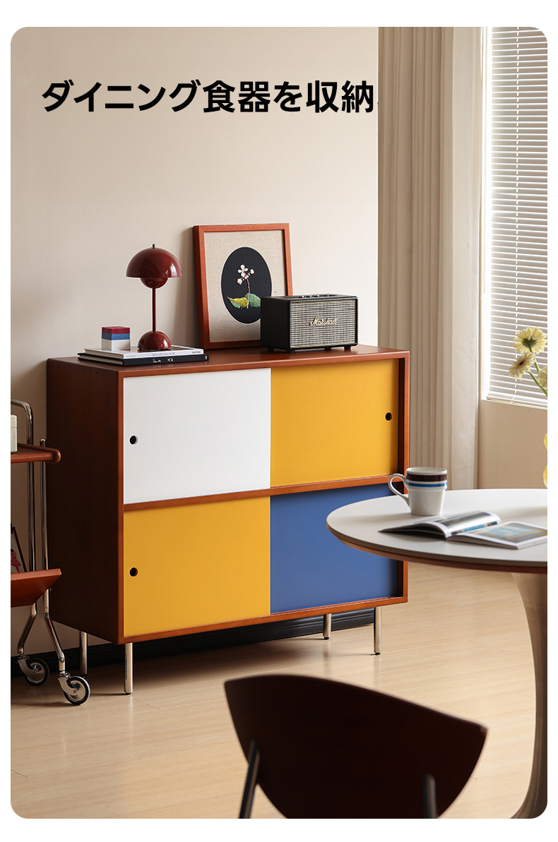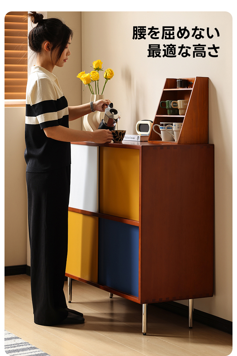 - 【北欧風デザイン】:このキャビネットは北欧風のデザインを採用し、カラフルな色使いが特徴です。部屋を明るく彩り、どんなインテリアにもマッチします。カップルやファミリーに最適な選択です。