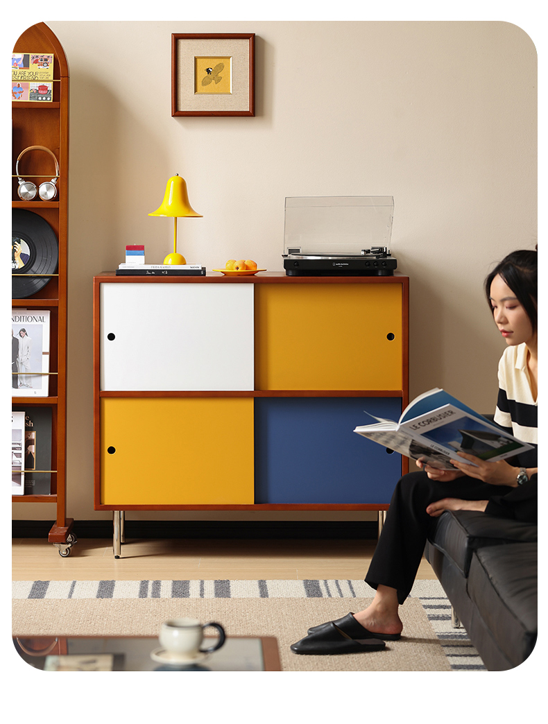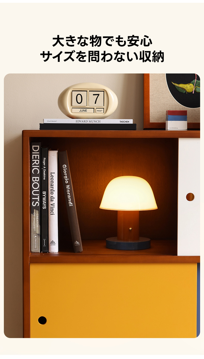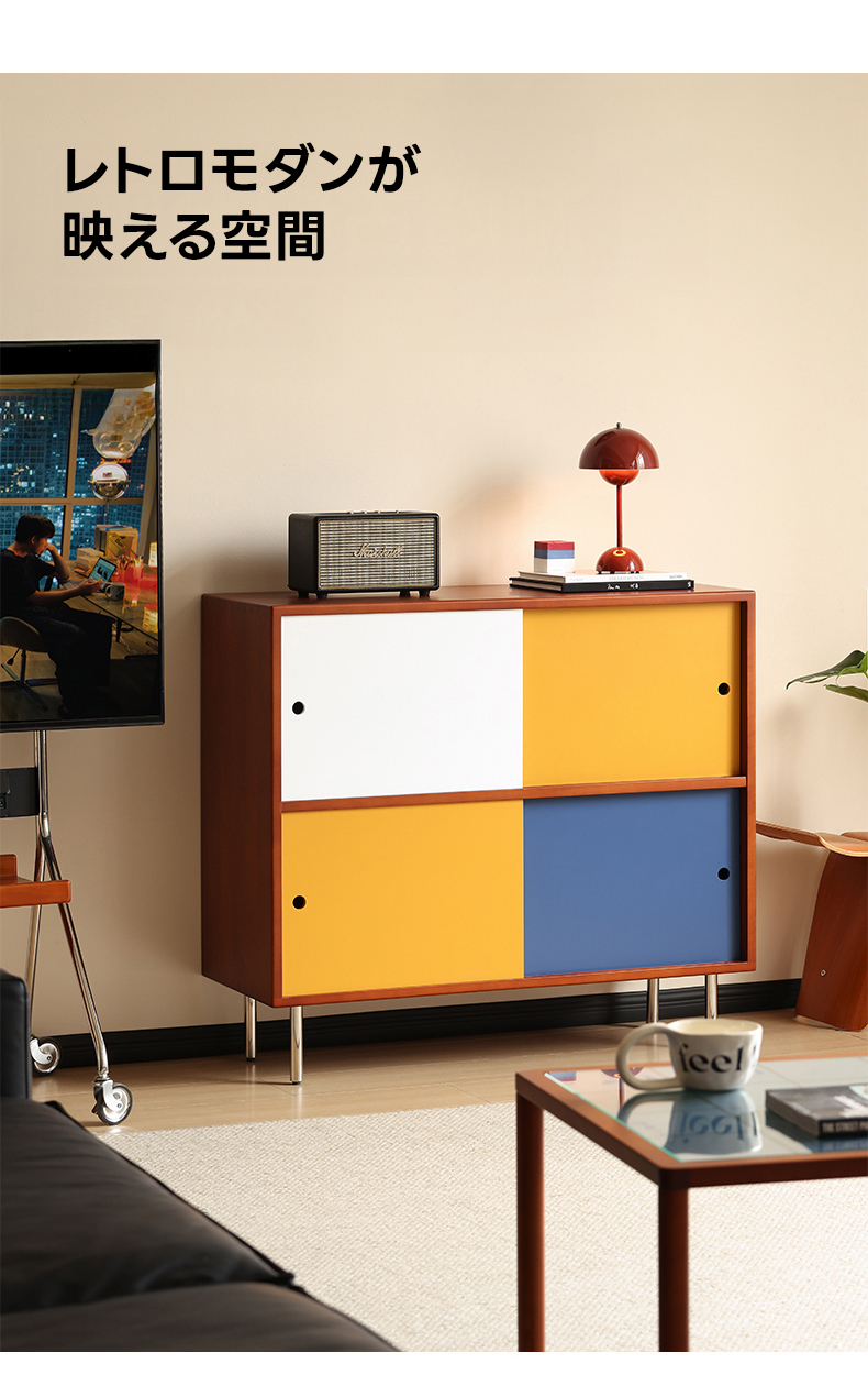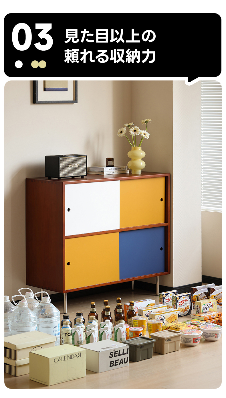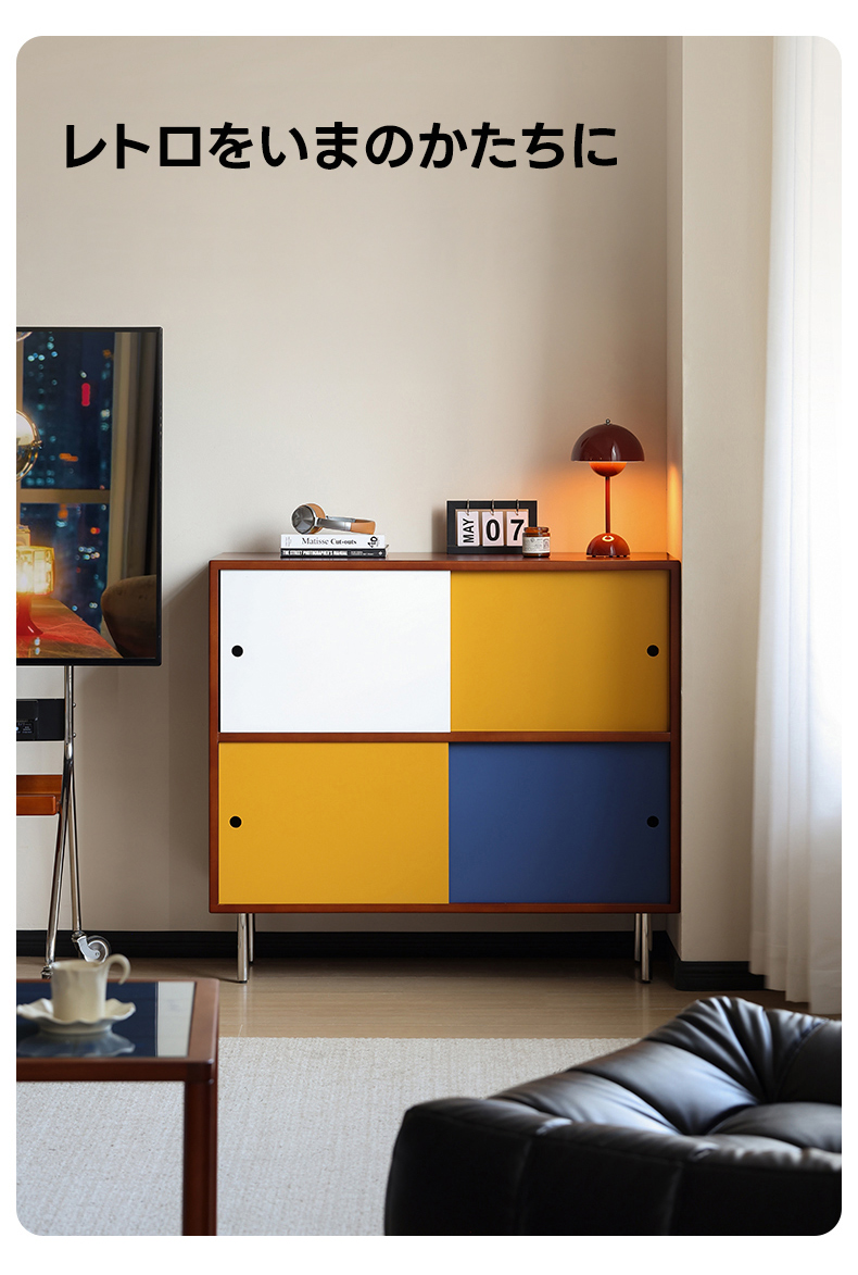 - 【北欧風デザイン】:このキャビネットは北欧風のデザインを採用し、カラフルな色使いが特徴です。部屋を明るく彩り、どんなインテリアにもマッチします。カップルやファミリーに最適な選択です。