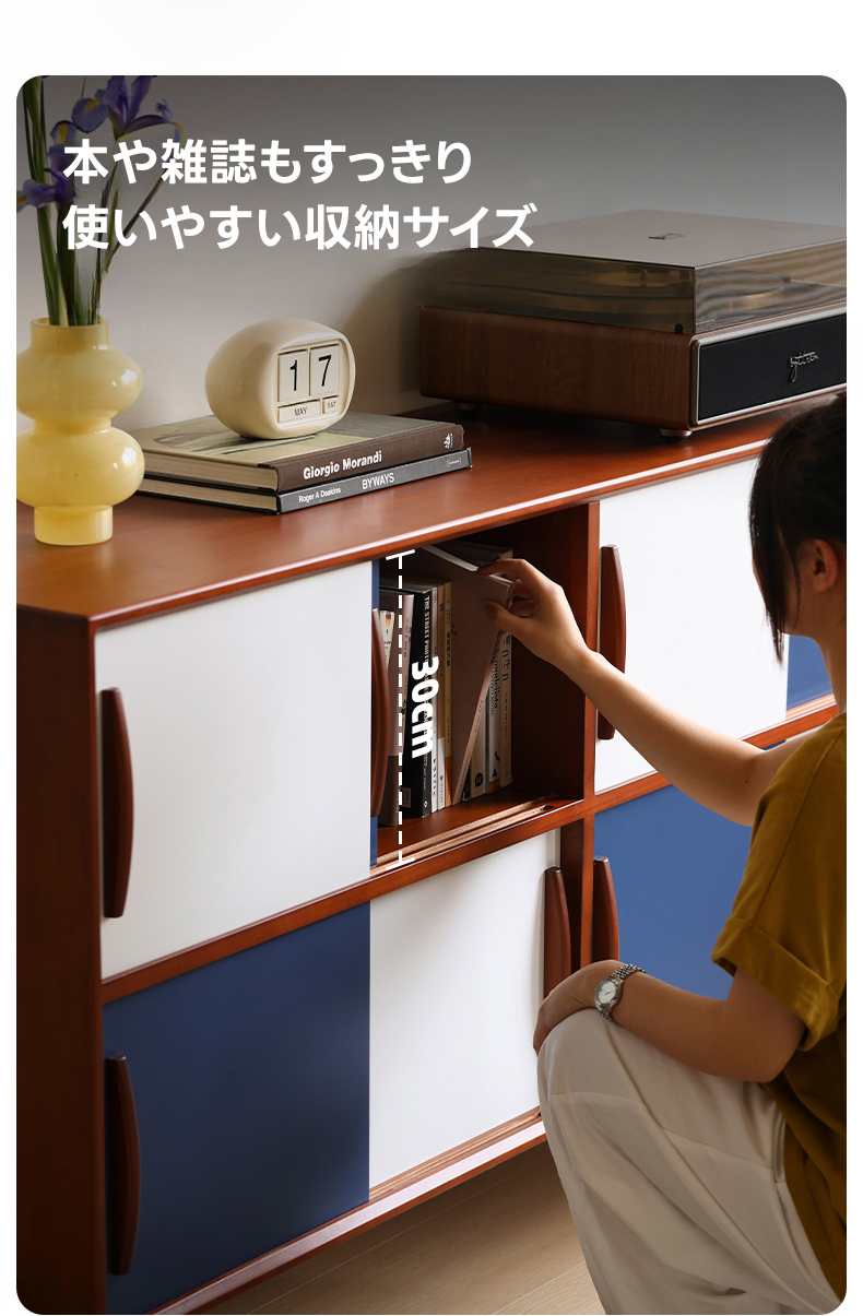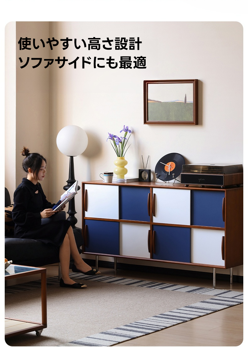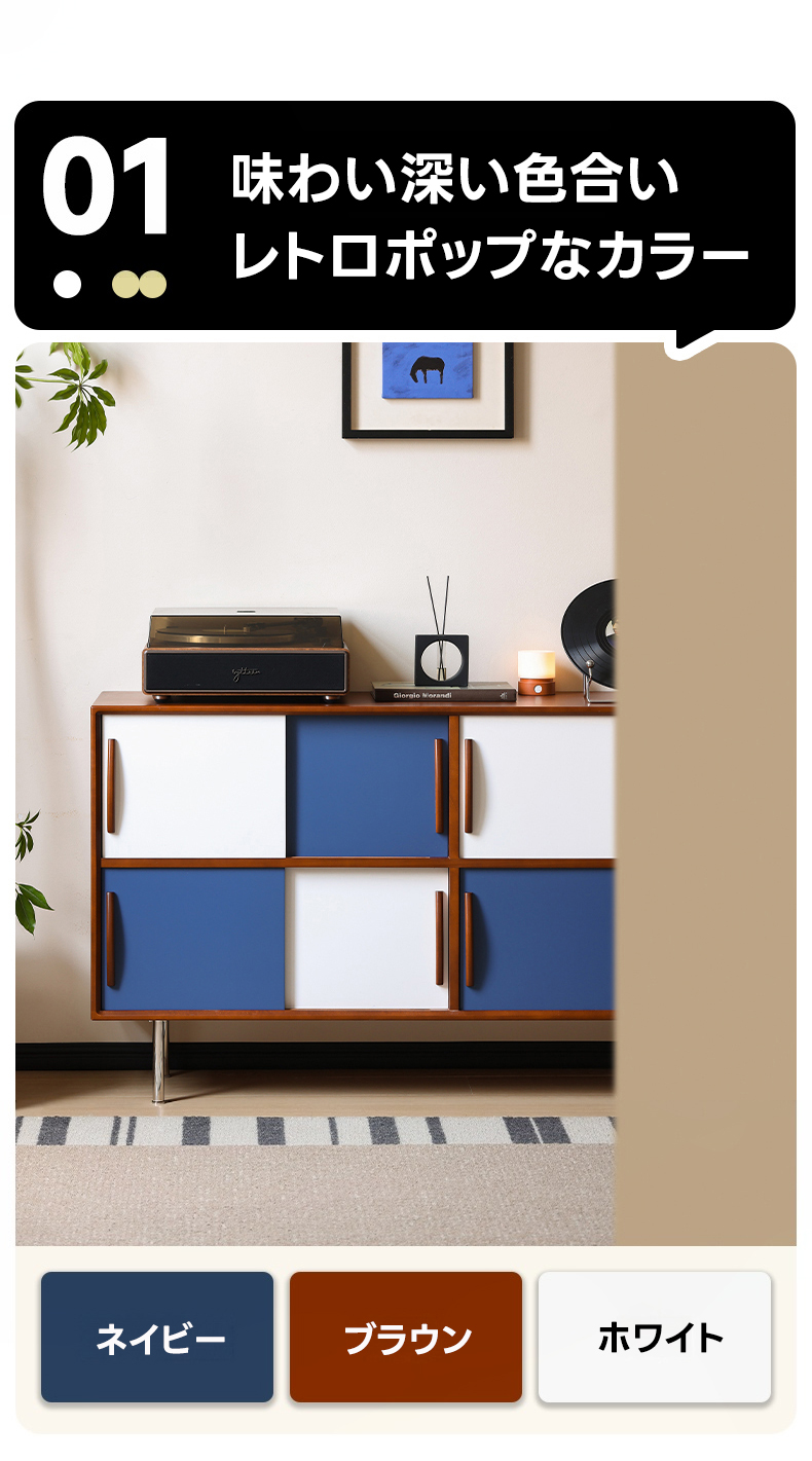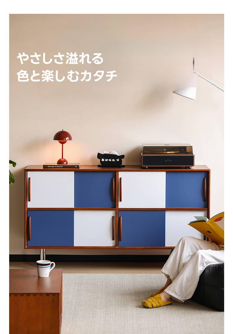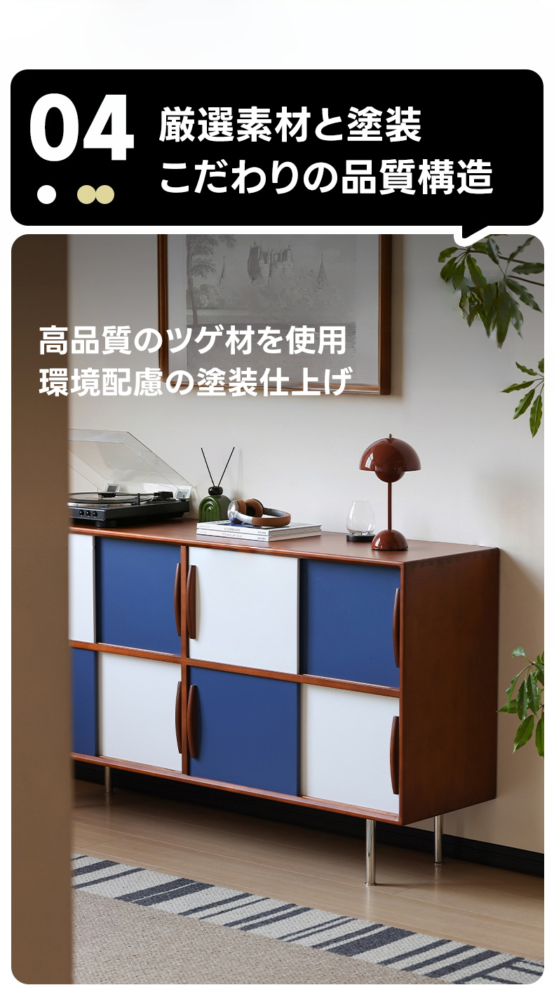 - 【ヴィンテージ感溢れるデザイン】ツートンパネルキャビネットは、ブルーとホワイトのツートンカラーで、リビングや寝室にポップで落ち着いた雰囲気を演出します。ヴィンテージスタイルが好きな方にぴったりのデザインです。